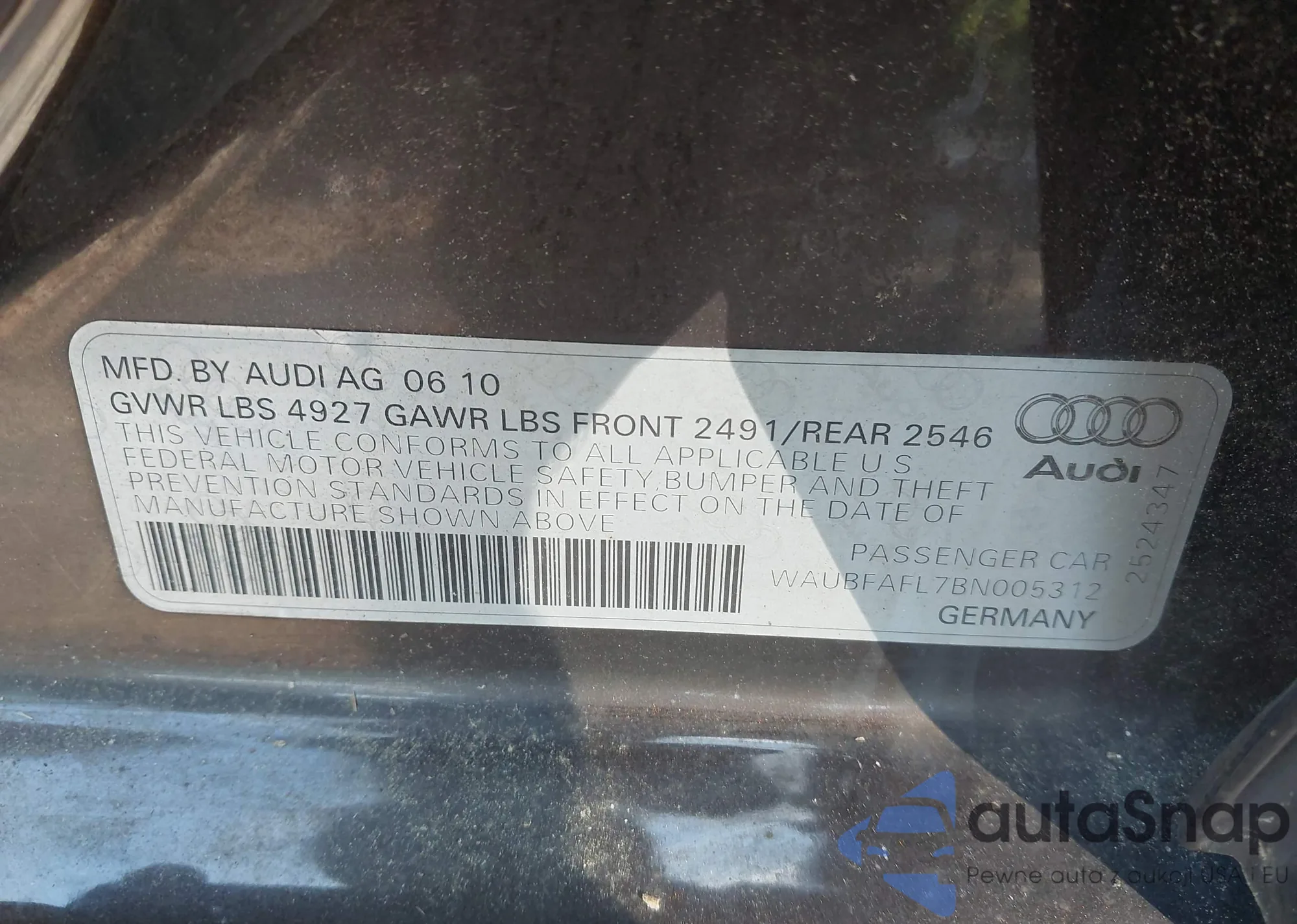 • VIN WAUBFAFL7BN005312