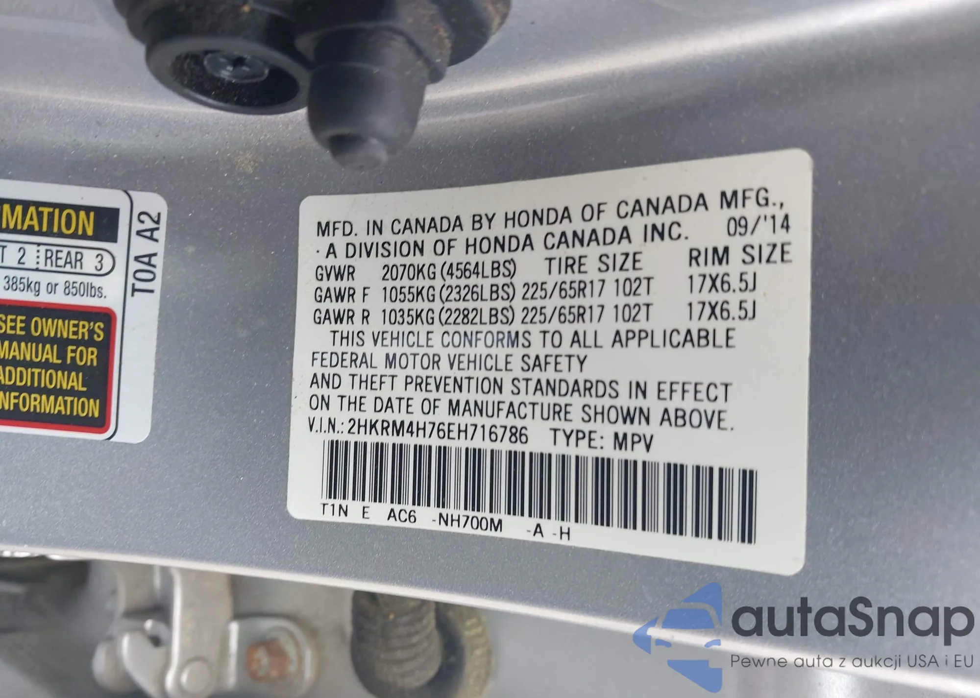 • VIN 2HKRM4H76EH716786