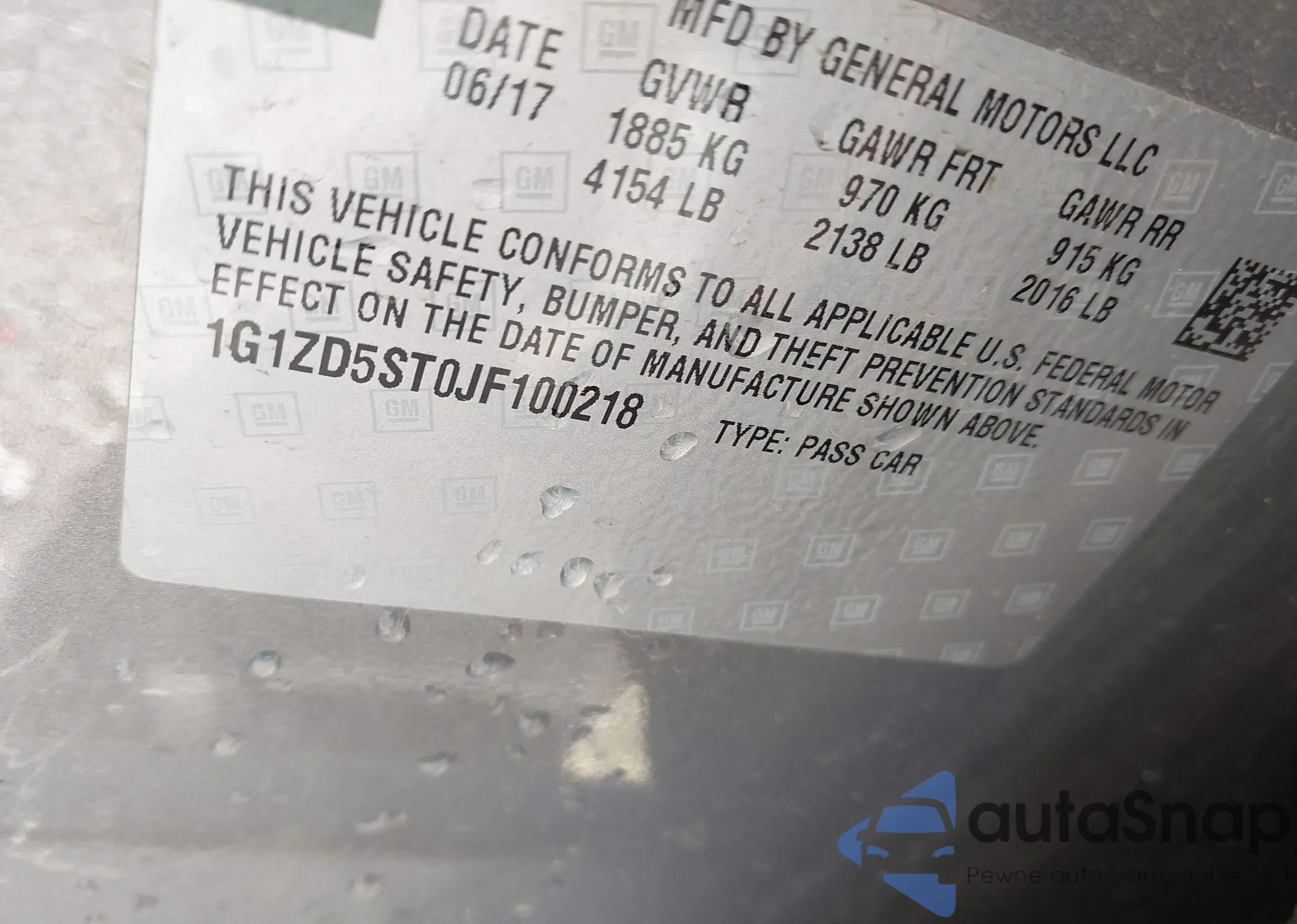 • VIN 1G1ZD5ST0JF100218