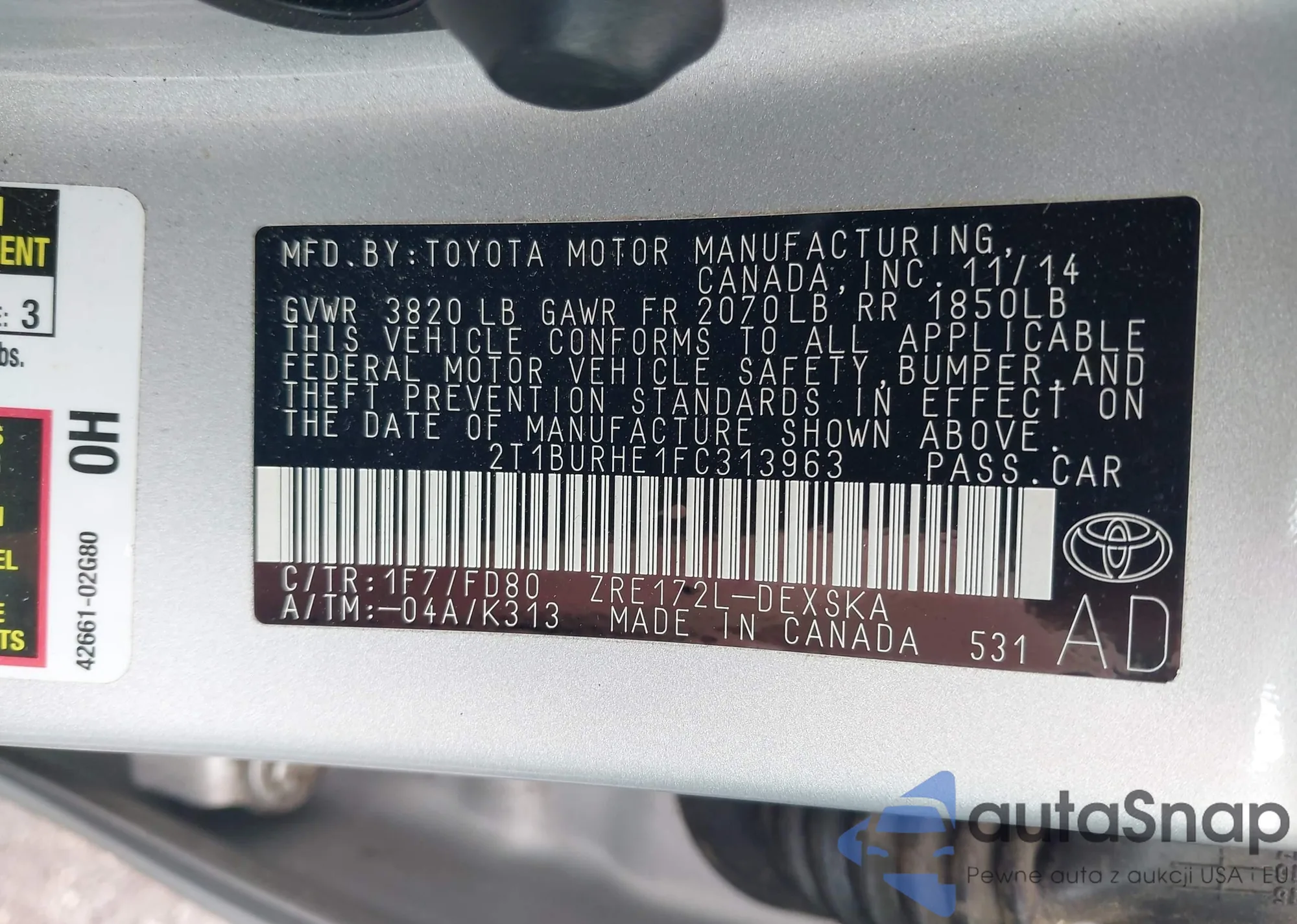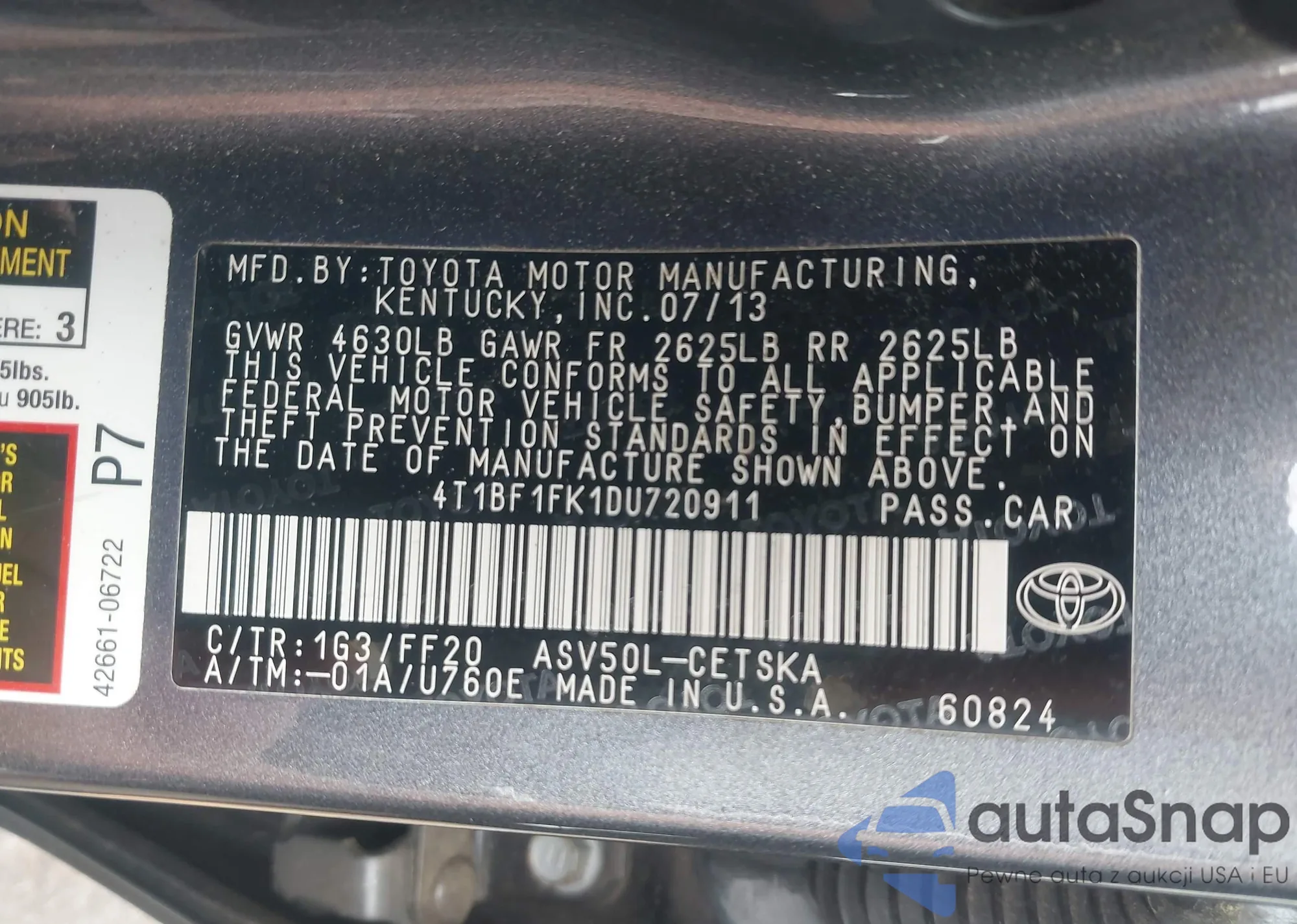 • VIN 4T1BF1FK1DU720911