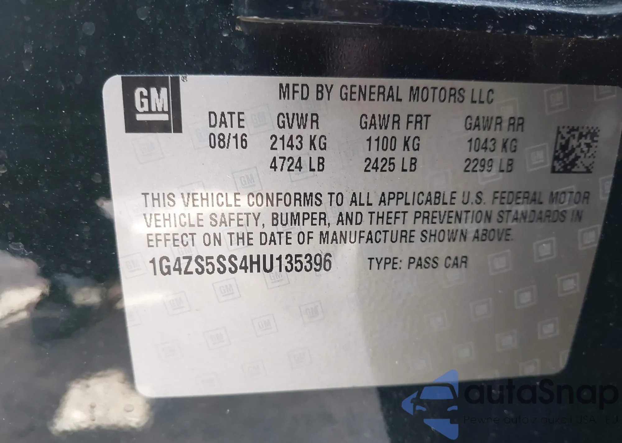 • VIN 1G4ZS5SS4HU135396