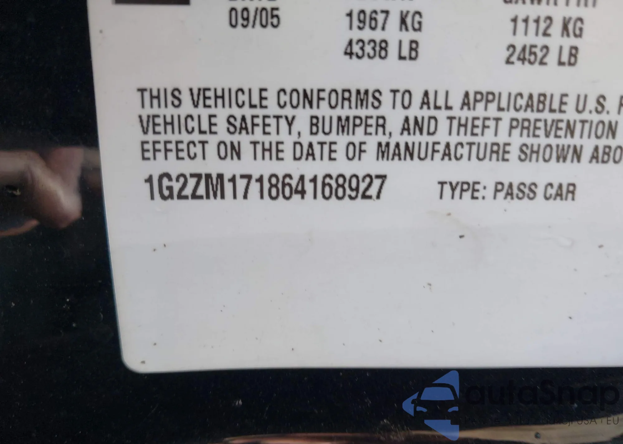 • VIN 1G2ZM171864168927