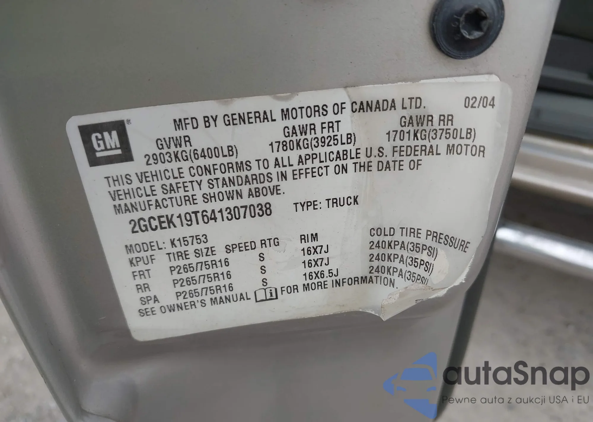 LOT: 42494972 VIN: 2GCEK19T641307038