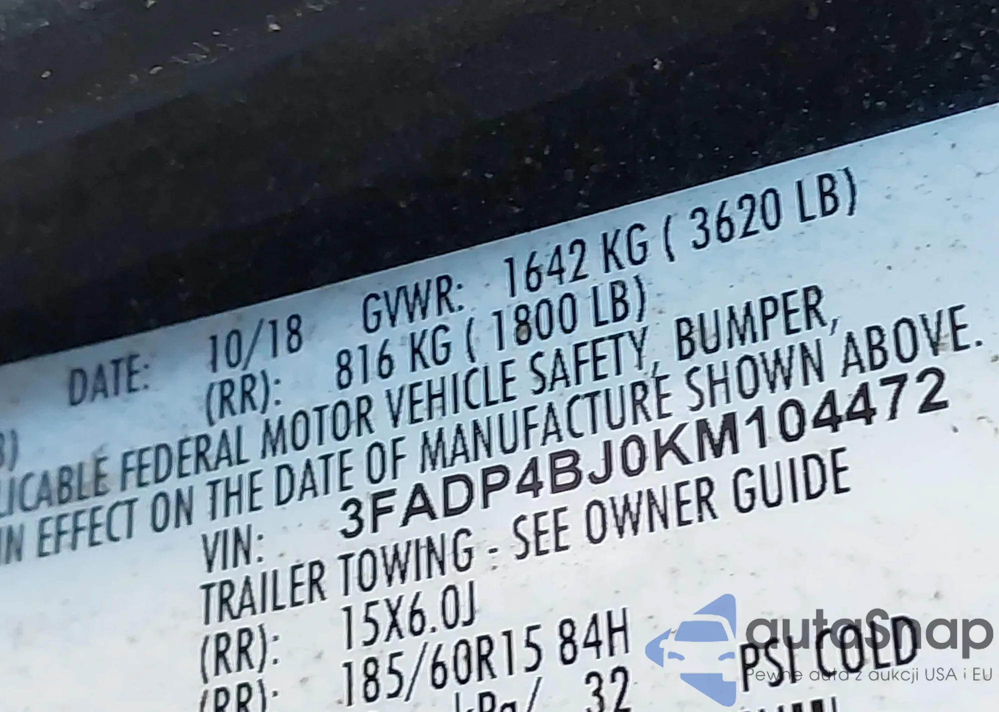 • VIN 3FADP4BJ0KM104472