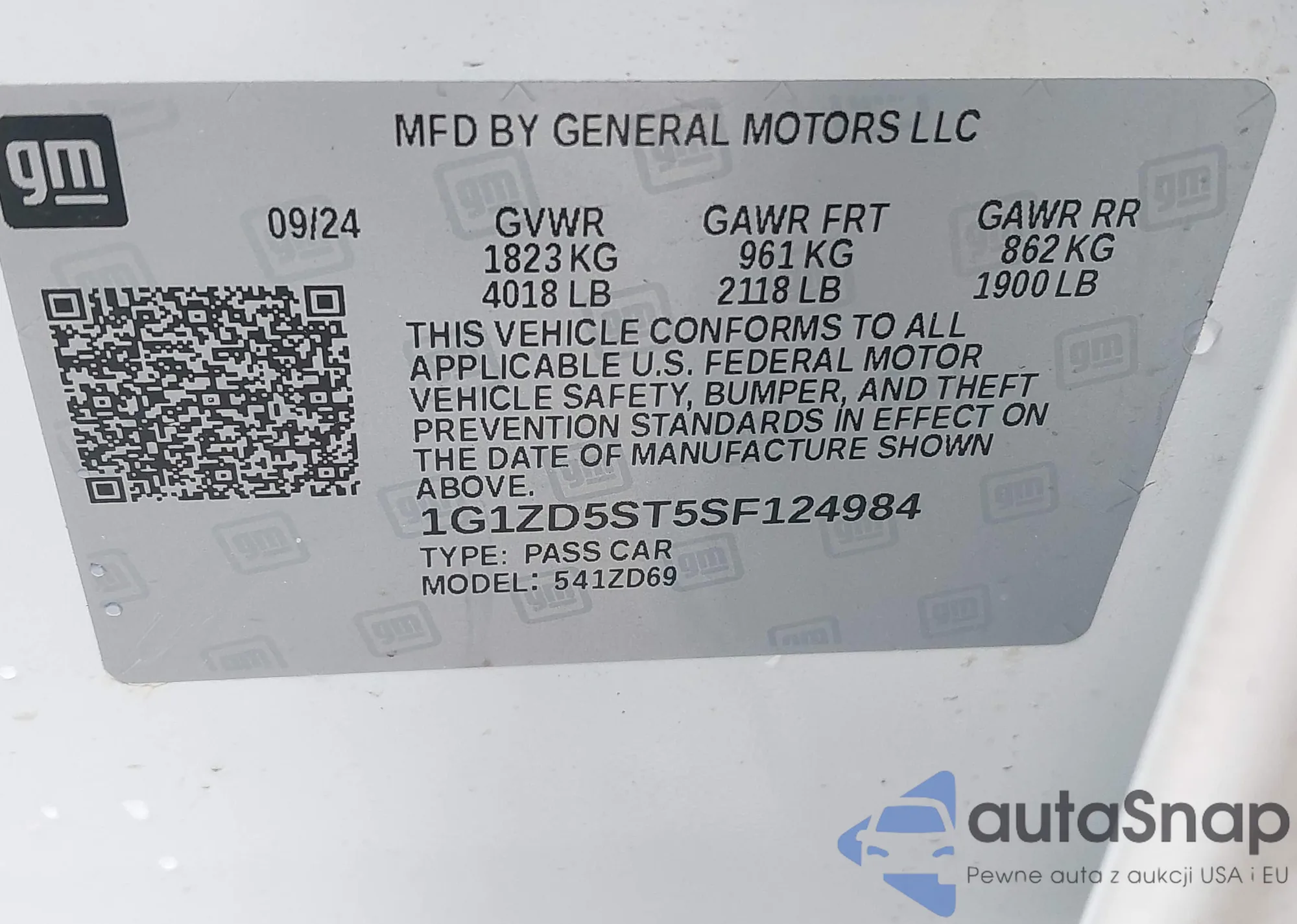 • VIN 1G1ZD5ST5SF124984