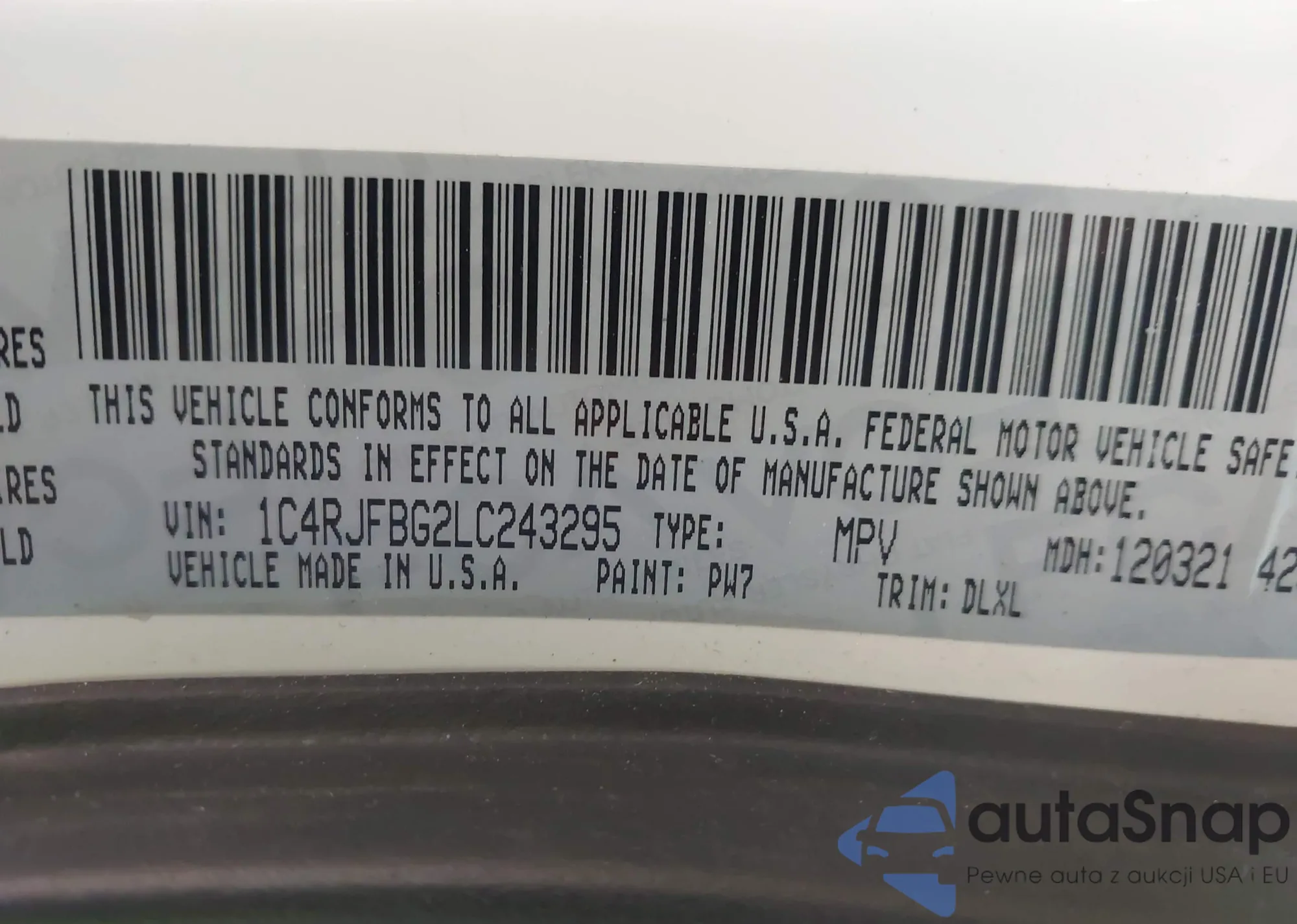 • VIN 1C4RJFBG2LC243295
