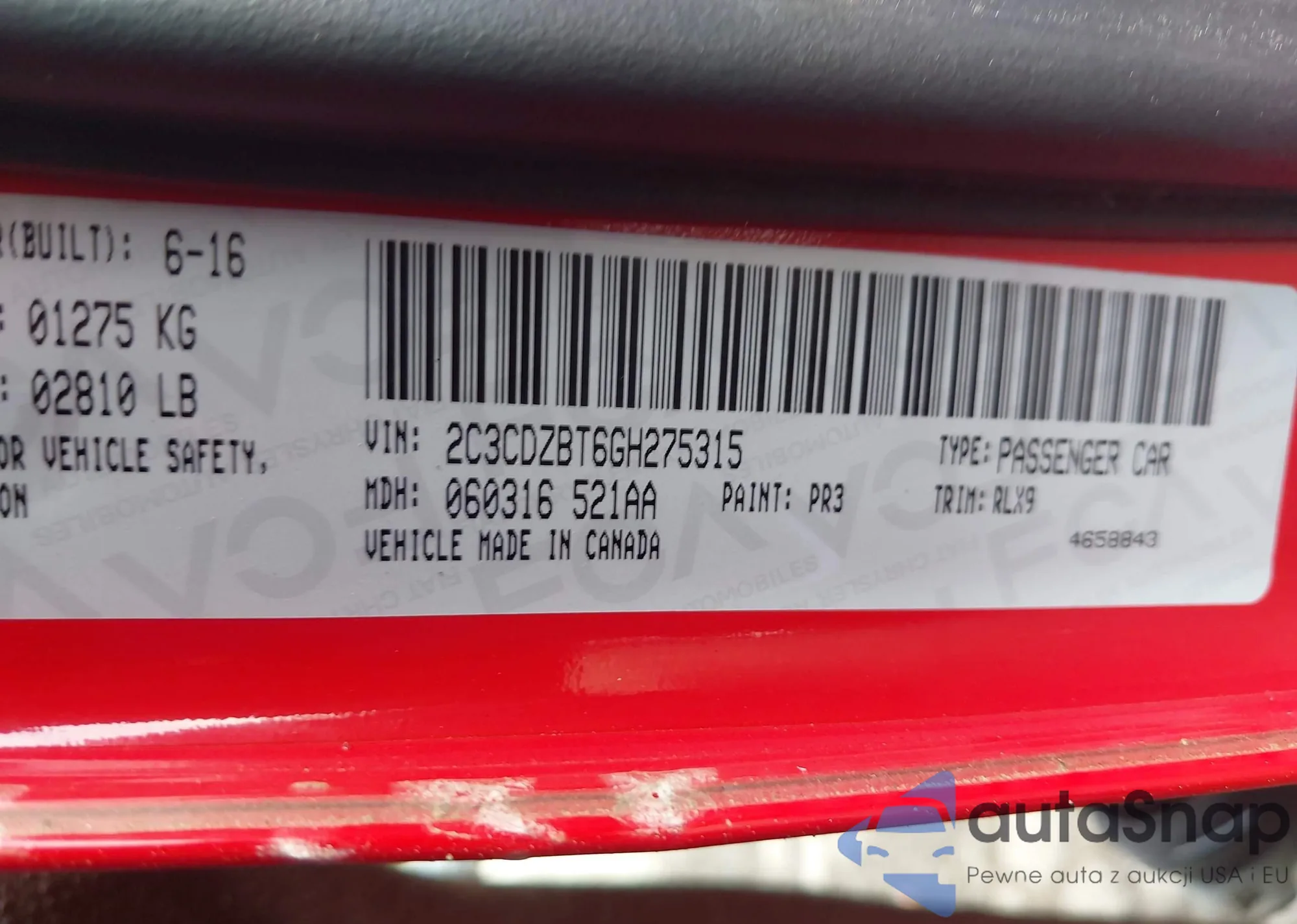 • VIN 2C3CDZBT6GH275315