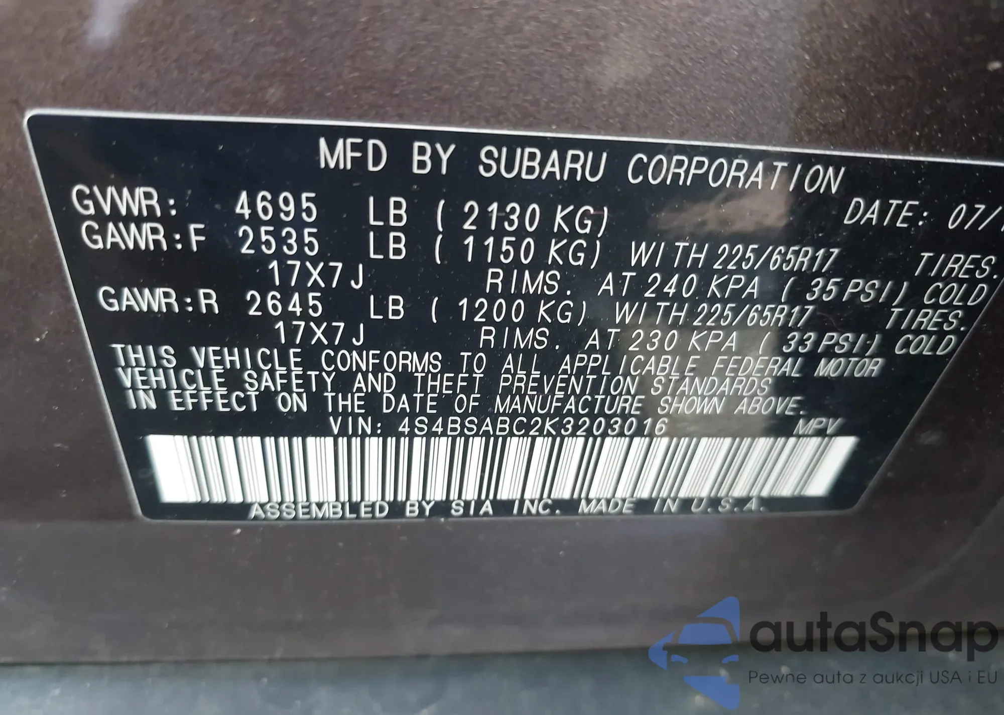• VIN 4S4BSABC2K3203016