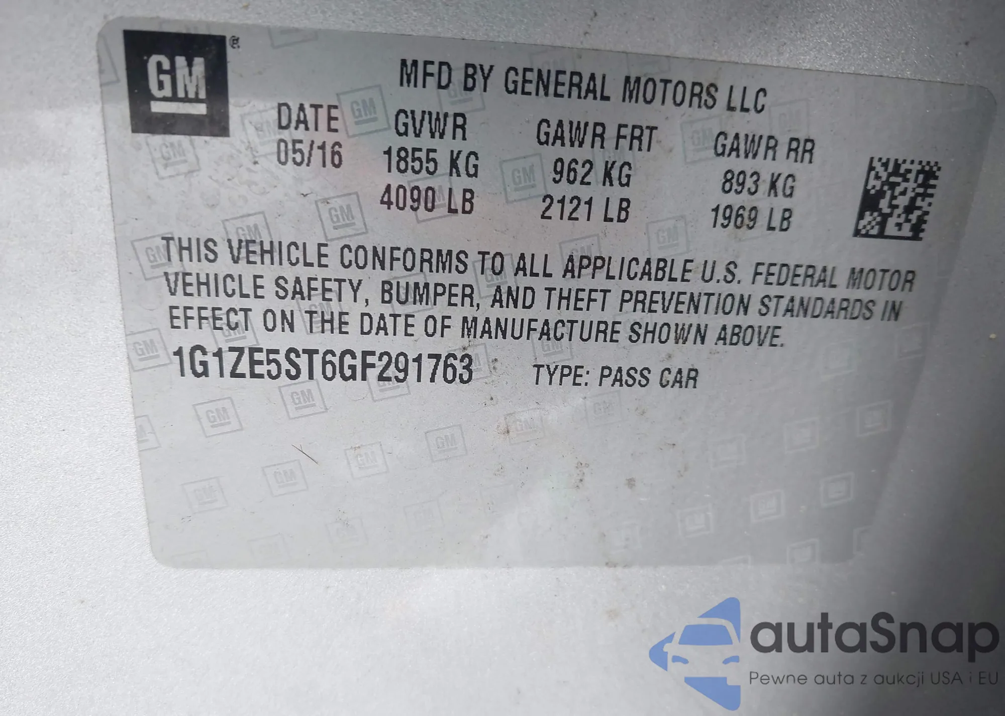 • VIN 1G1ZE5ST6GF291763