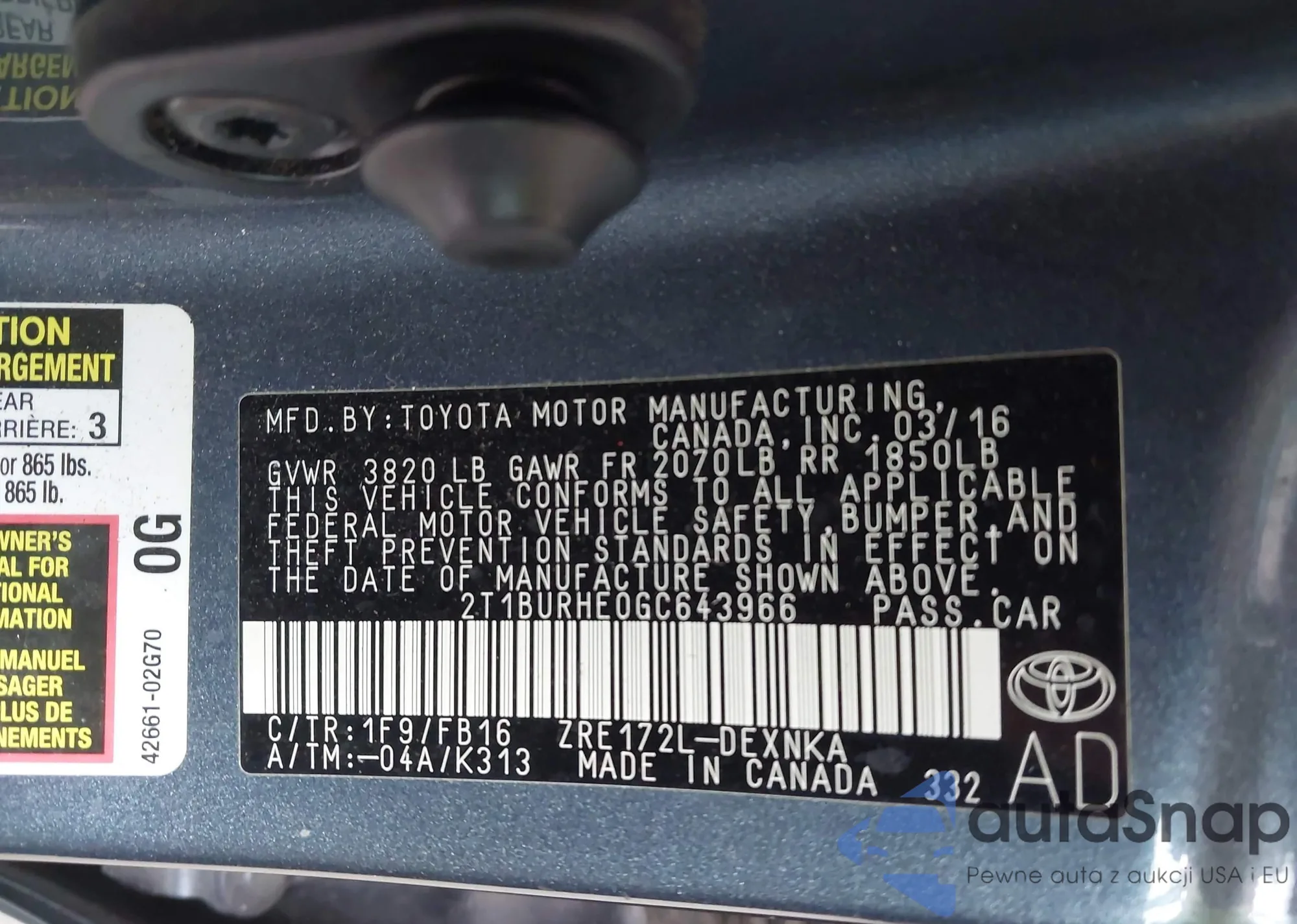 • VIN 4T1G11AK5RU850578