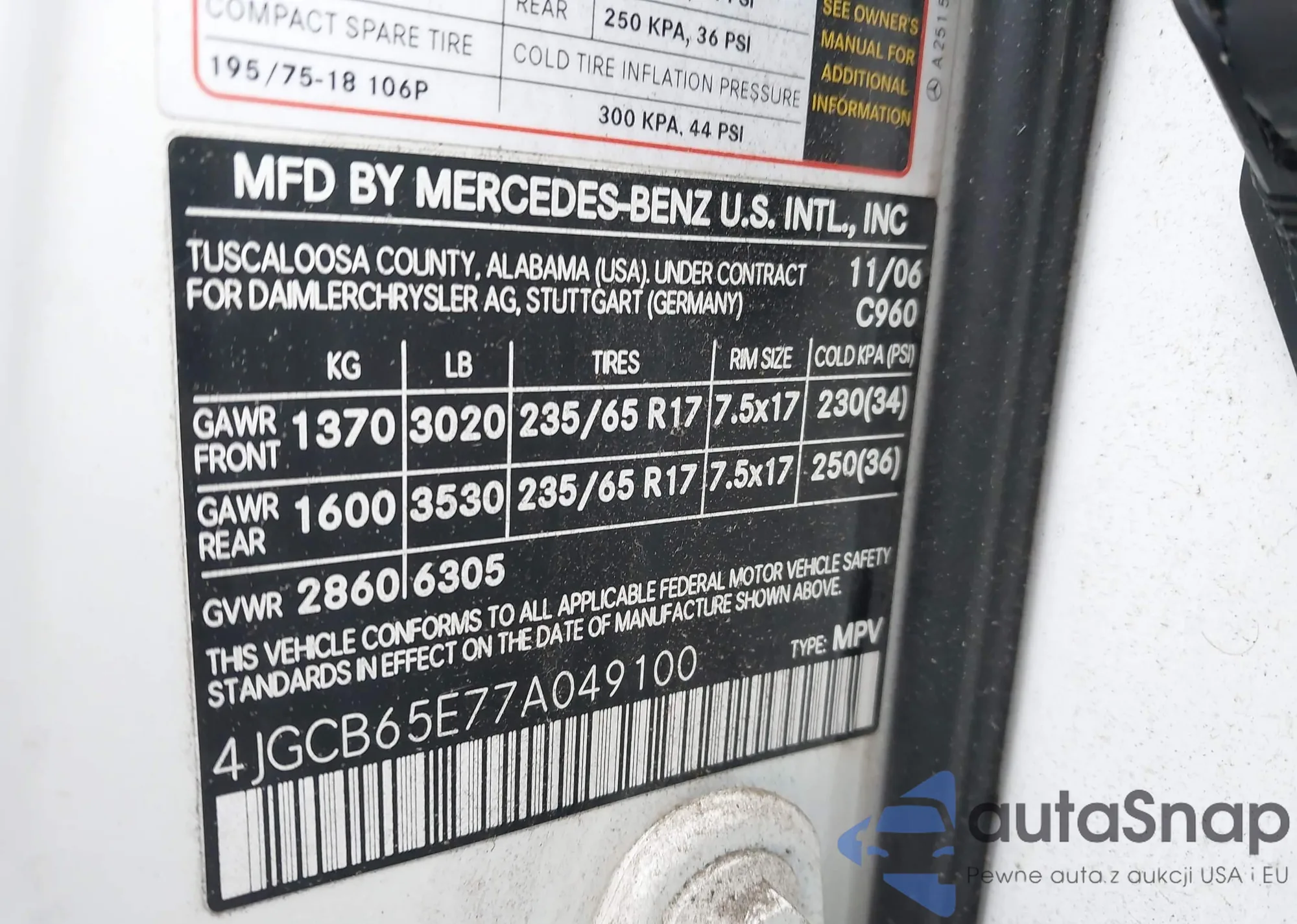 • VIN 4JGCB65E77A049100