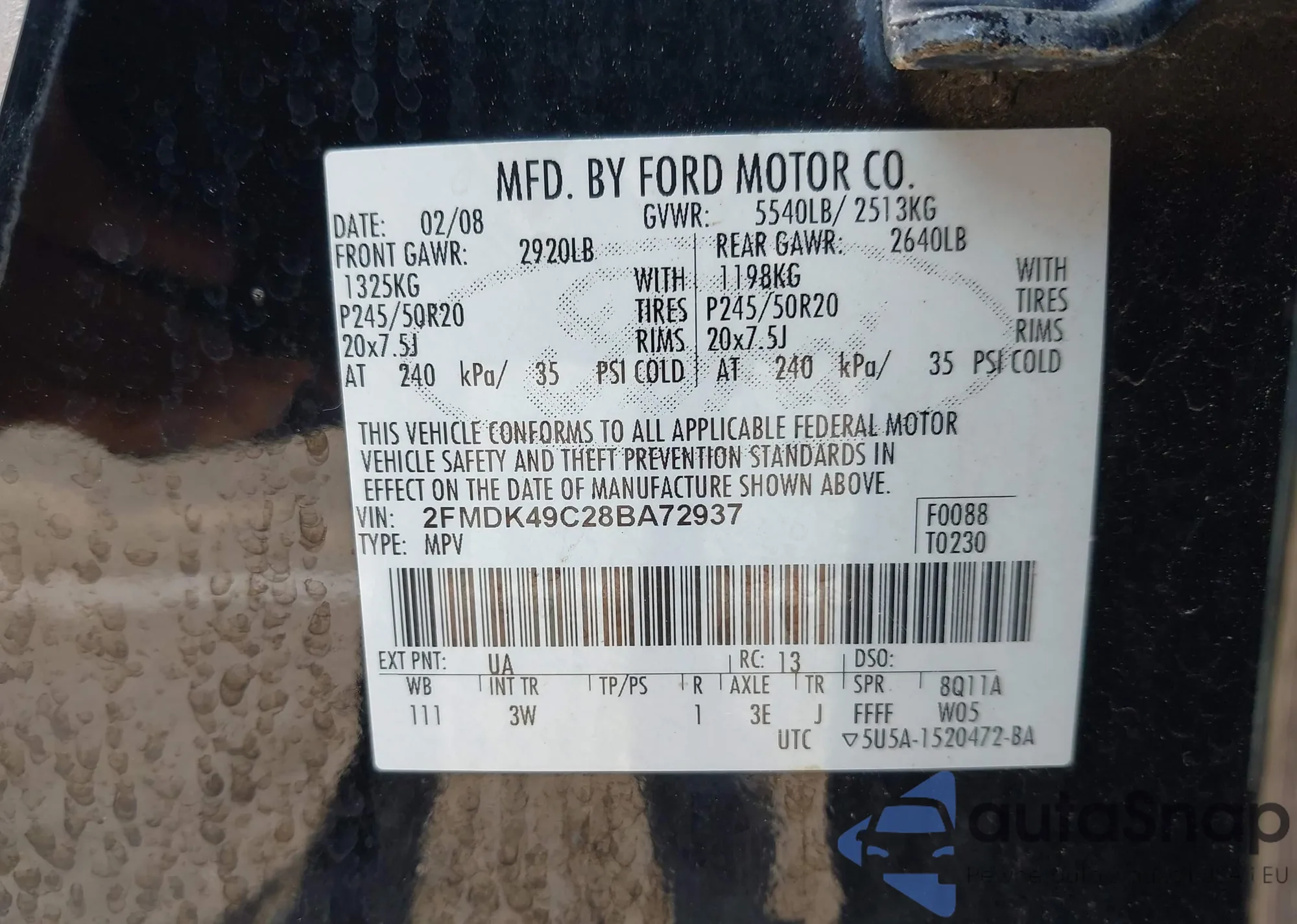LOT: 42482597 VIN: 3FAHP07157R174983