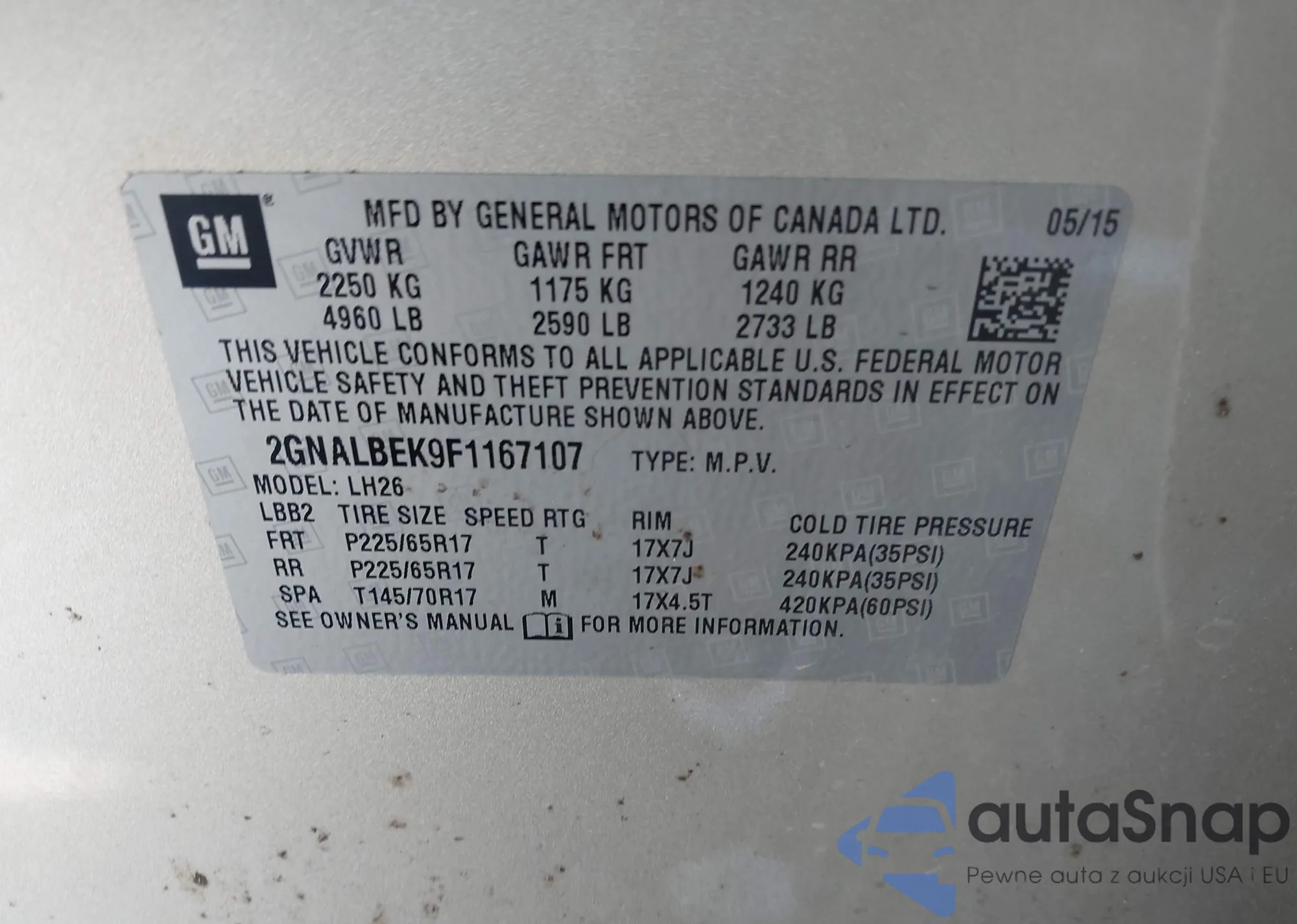 • VIN 2GNALBEK9F1167107