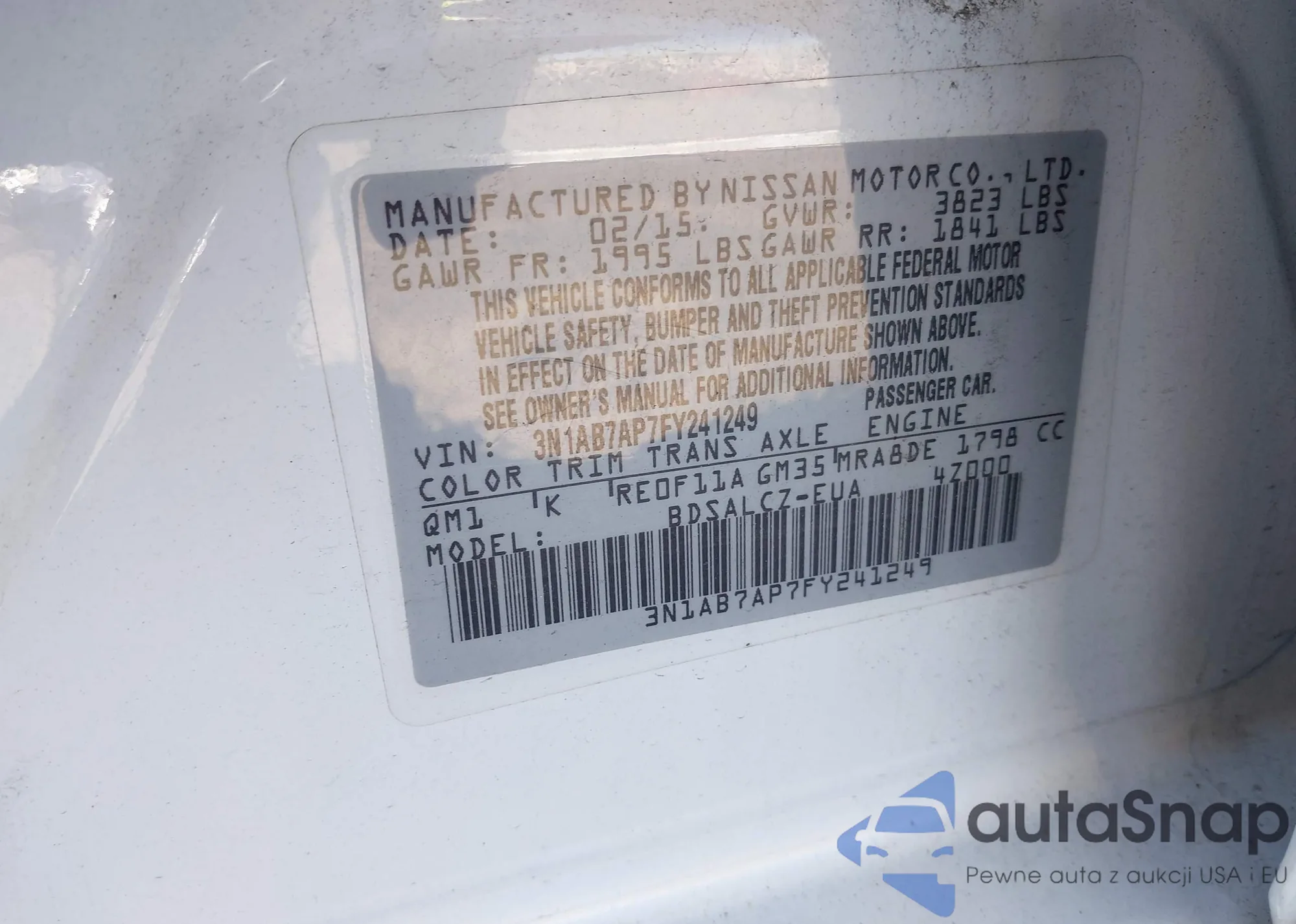 • VIN 3N1AB7AP7FY241249