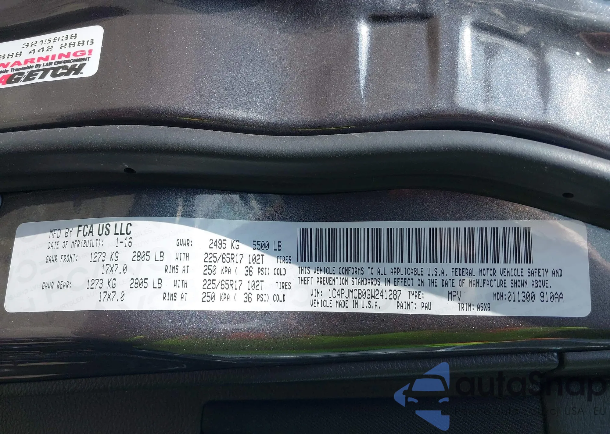 • VIN 1C4PJMCB0GW241287