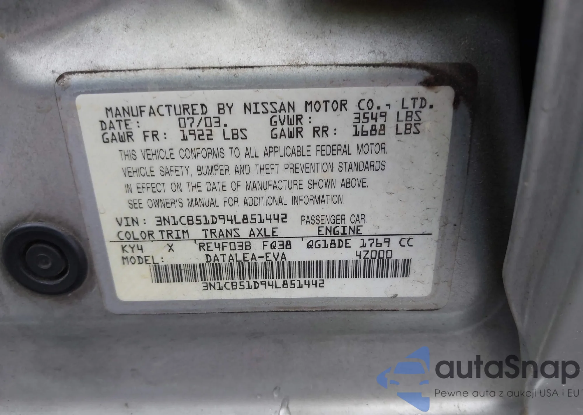 LOT: 41252118 VIN: 3N1AB7AP7FY241249