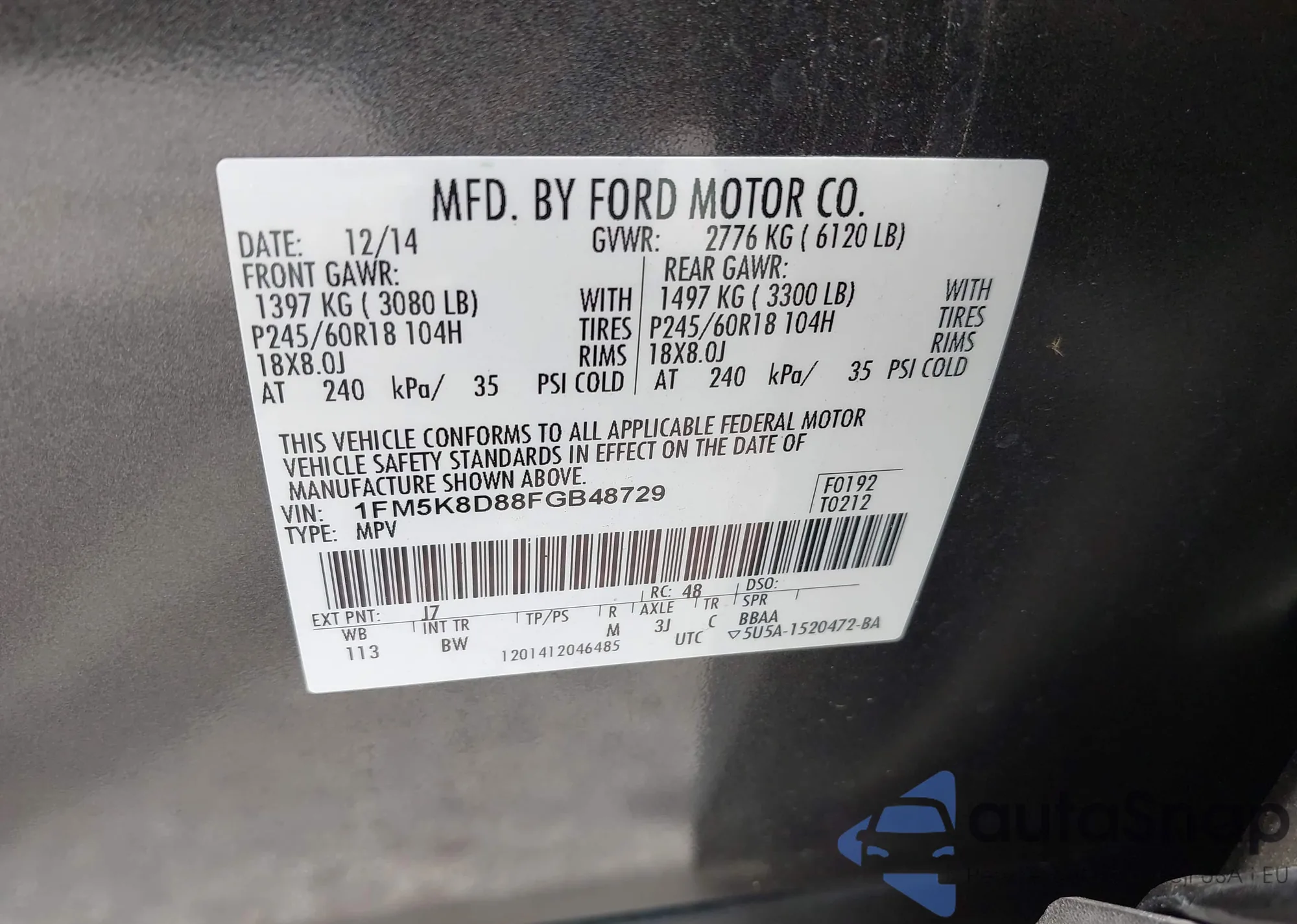 LOT: 42512966 VIN: 1FMCU04175KA81266