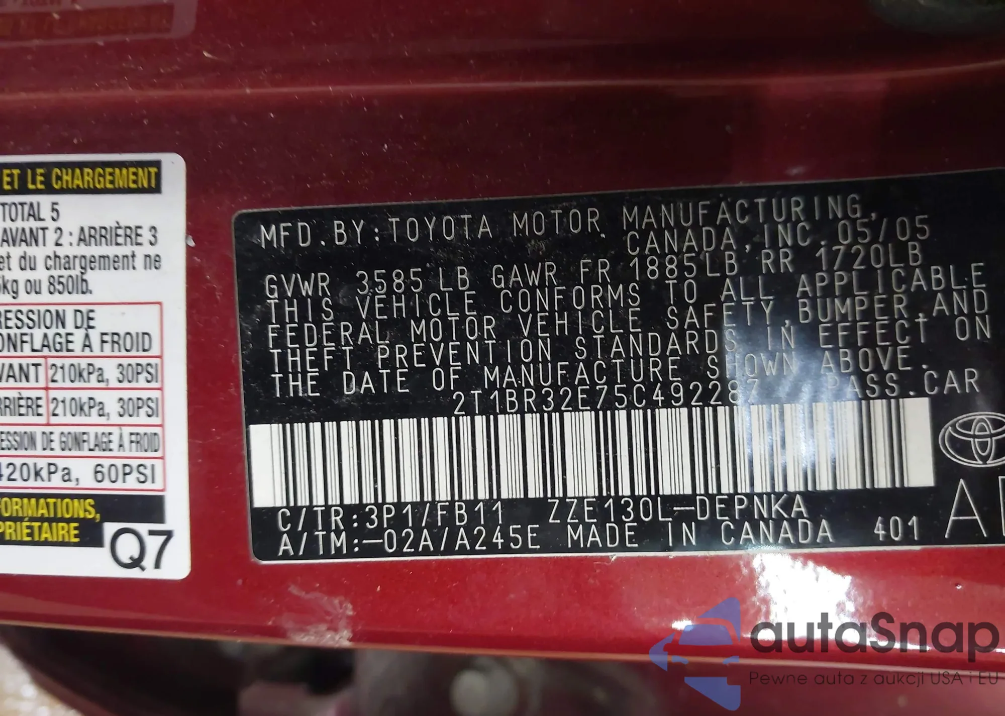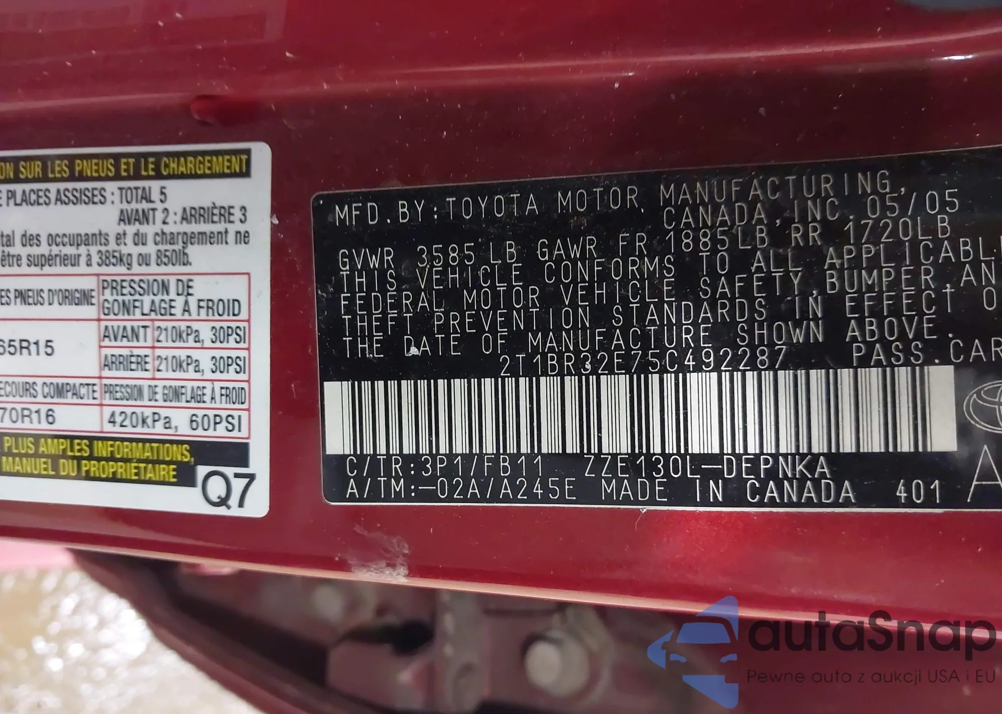 • VIN 2T1BR32E75C492287