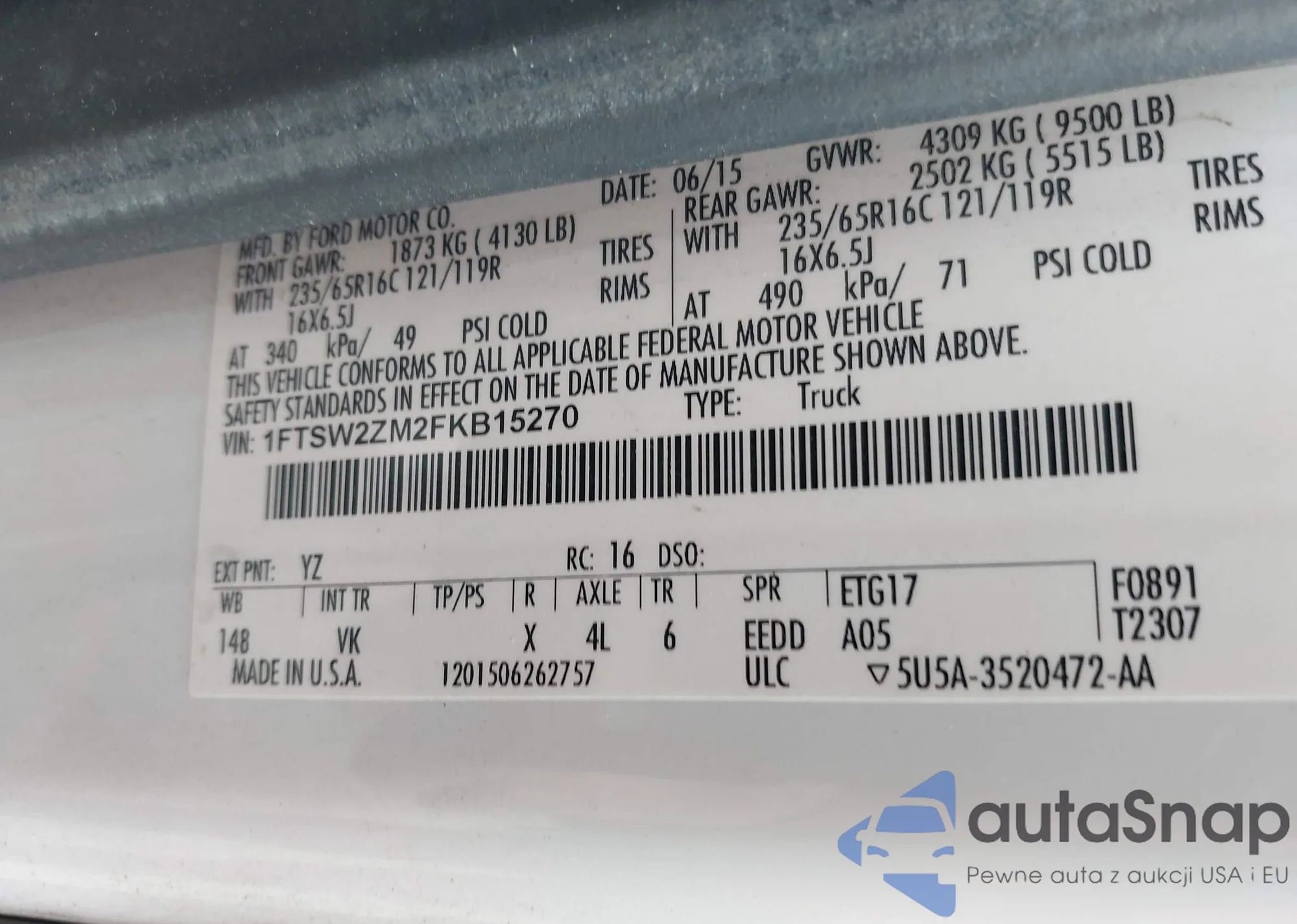 • VIN 1FTSW2ZM2FKB15270