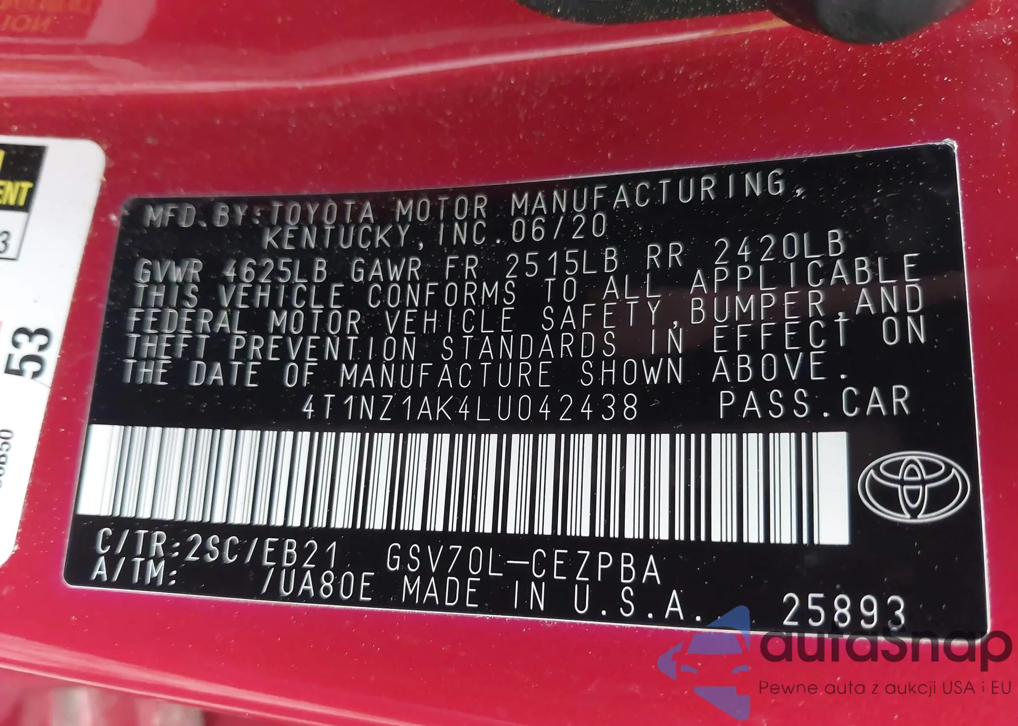 • VIN 4T1NZ1AK4LU042438