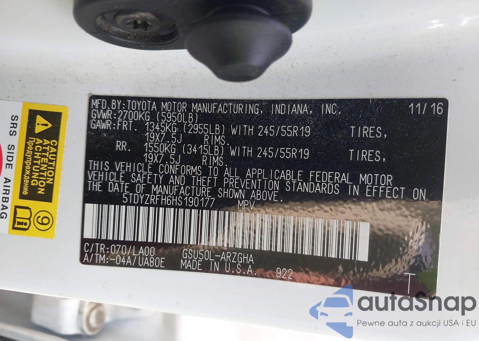 • VIN 5TDYZRFH6HS190177