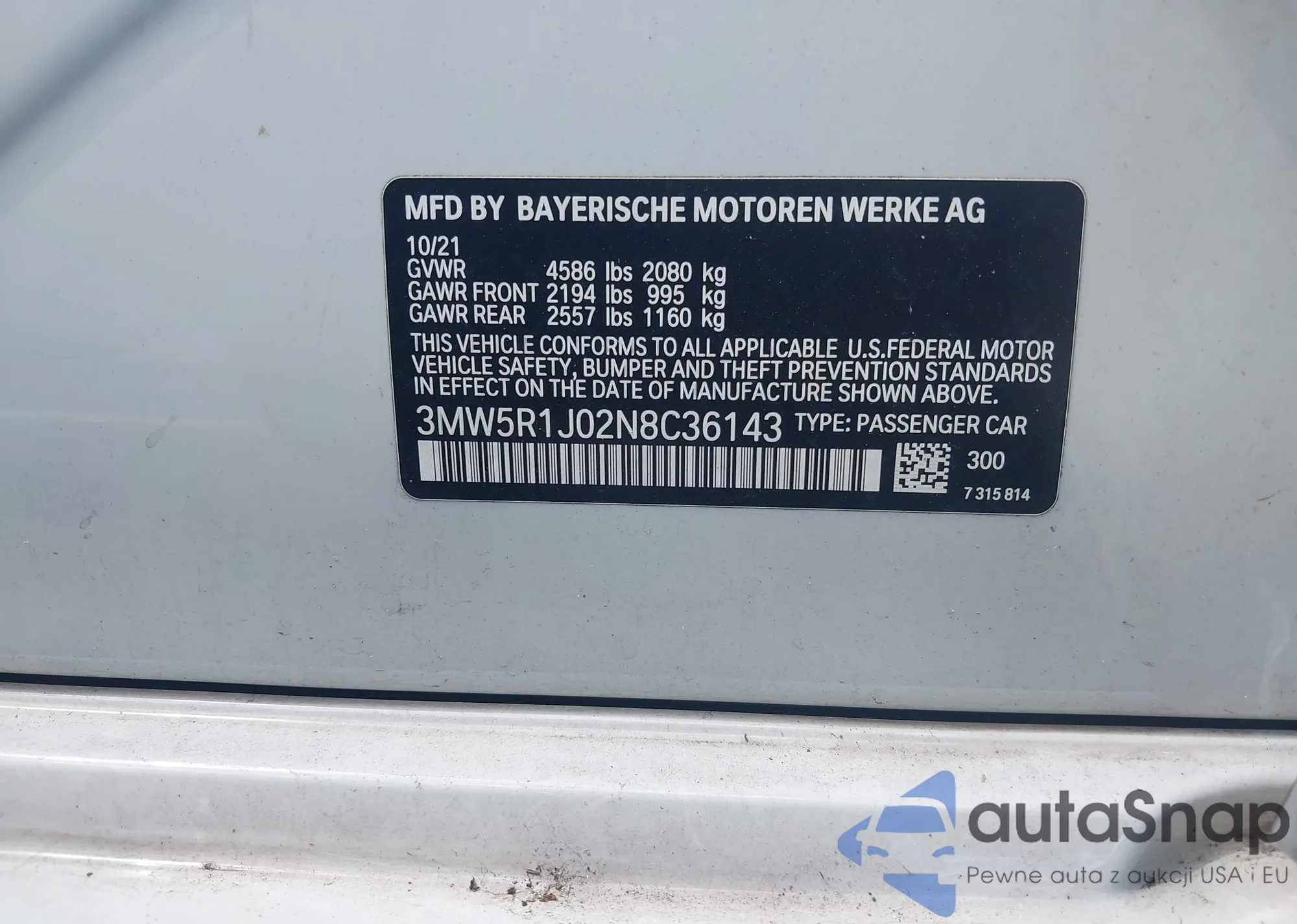 • VIN 3MW5R1J02N8C36143