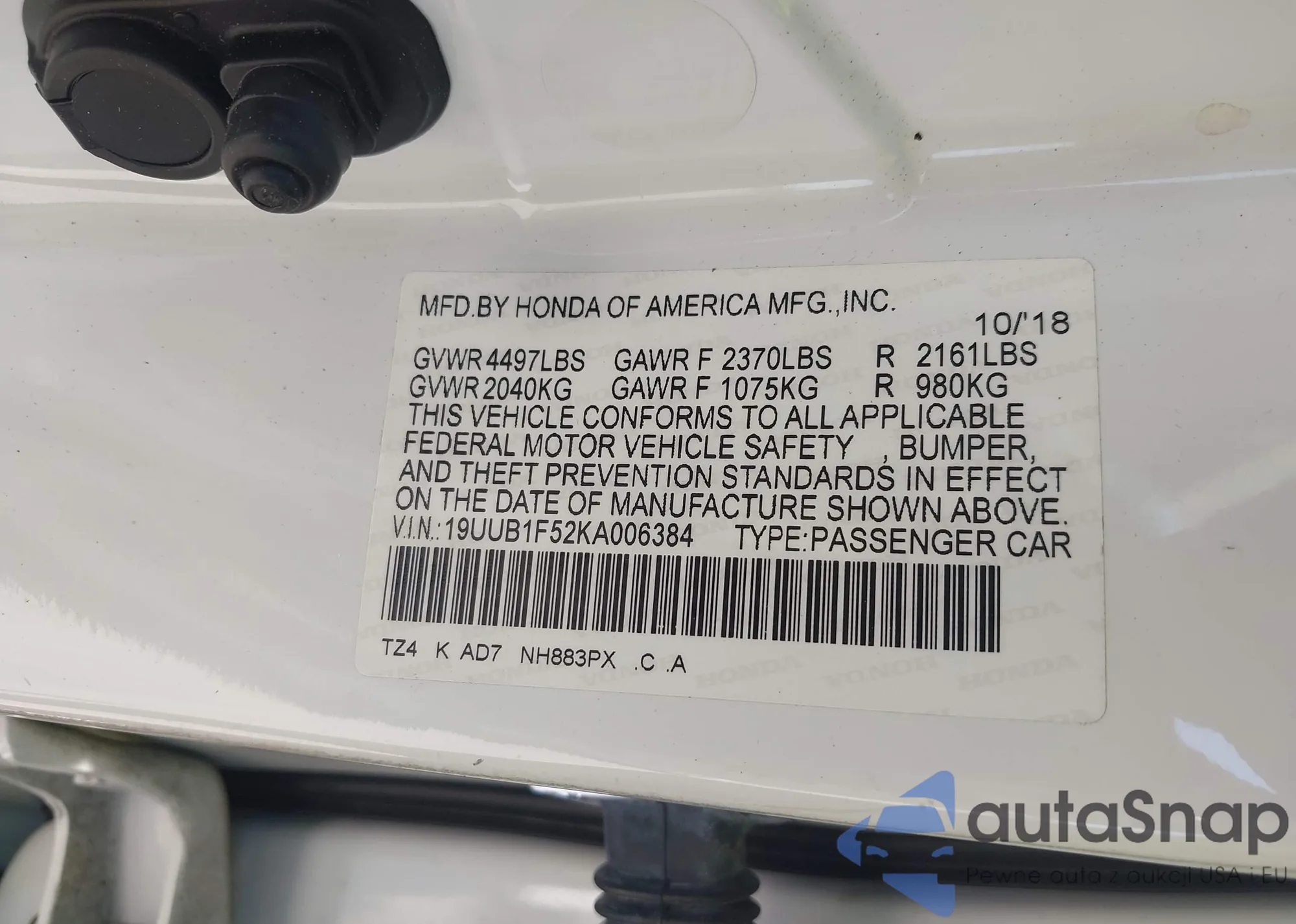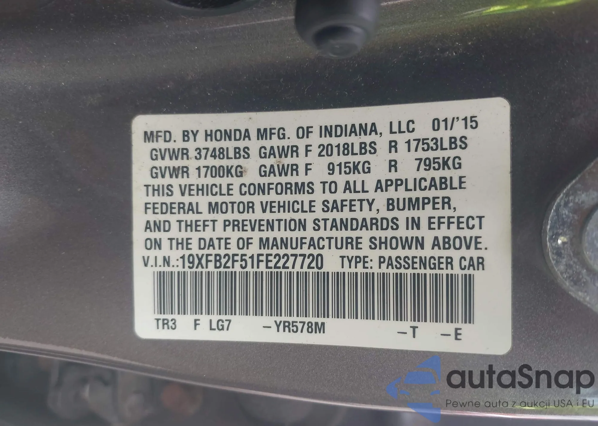 LOT: 42269759 VIN: 19XFB2F87FE219065