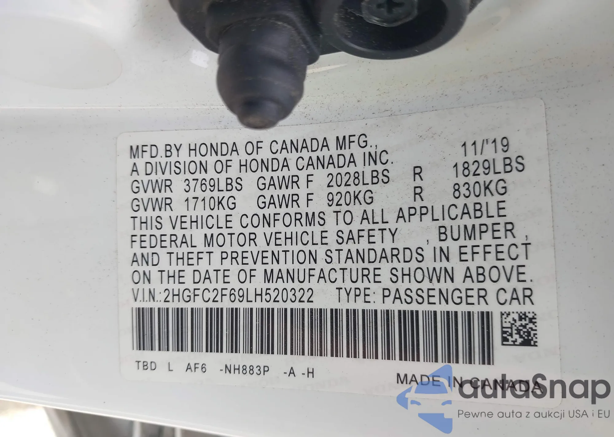 • VIN 2HGFC2F69LH520322