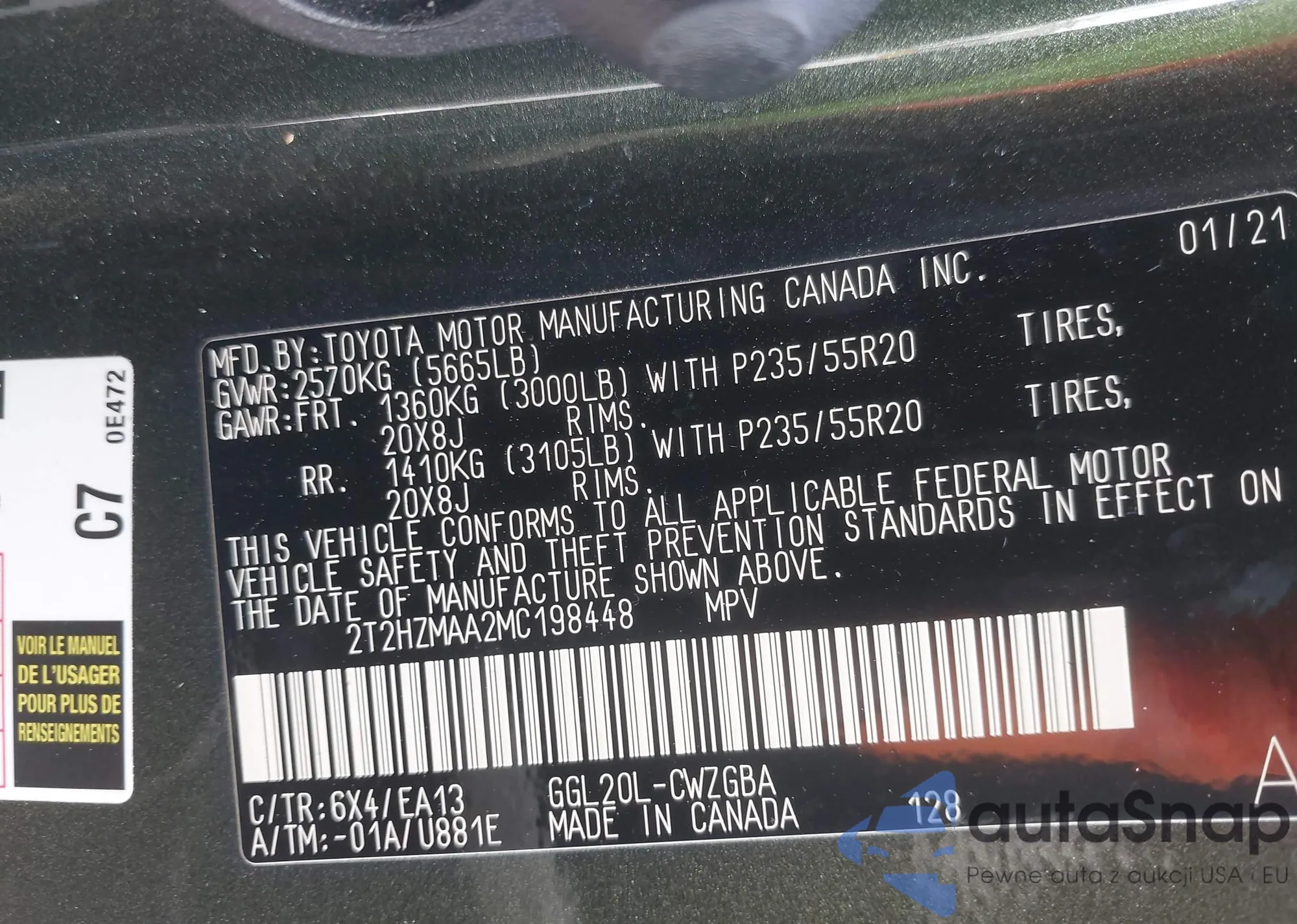 LOT: 40703140 VIN: 2T2HZMAA2MC198448