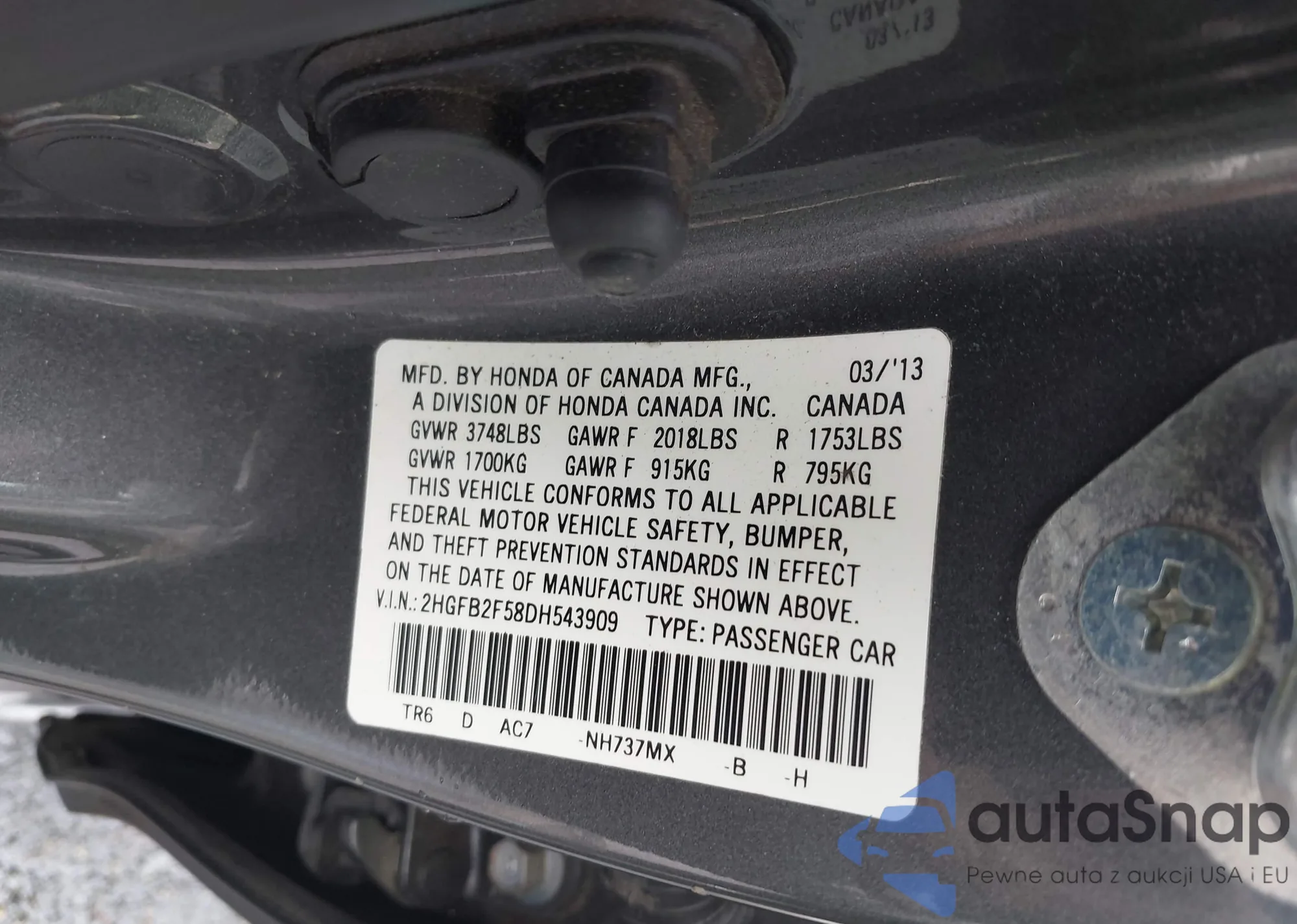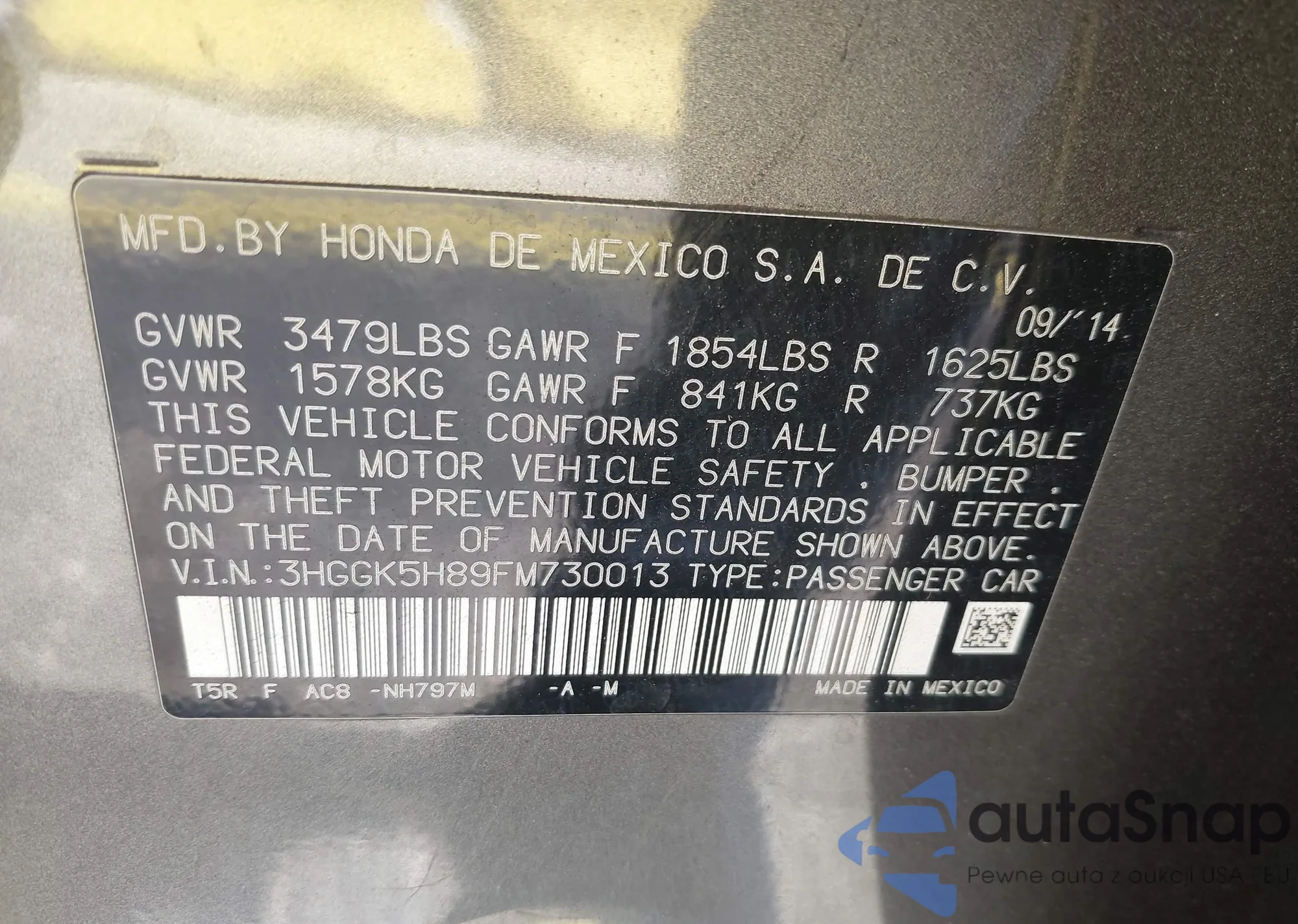 • VIN 3HGGK5H89FM730013