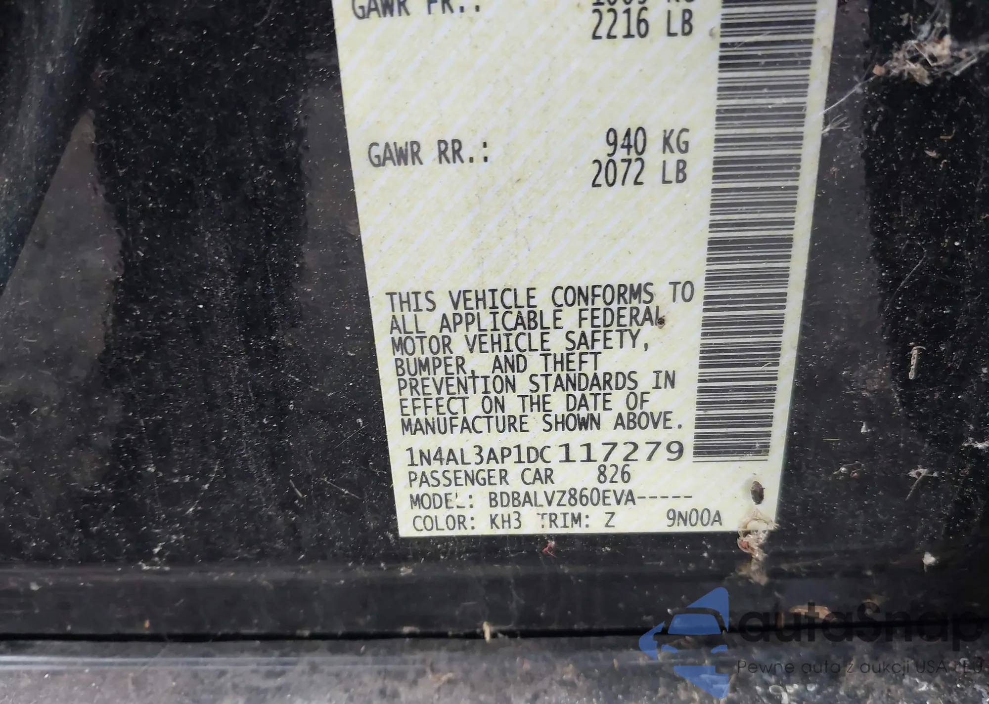 • VIN 1N4AL3AP1DC117279