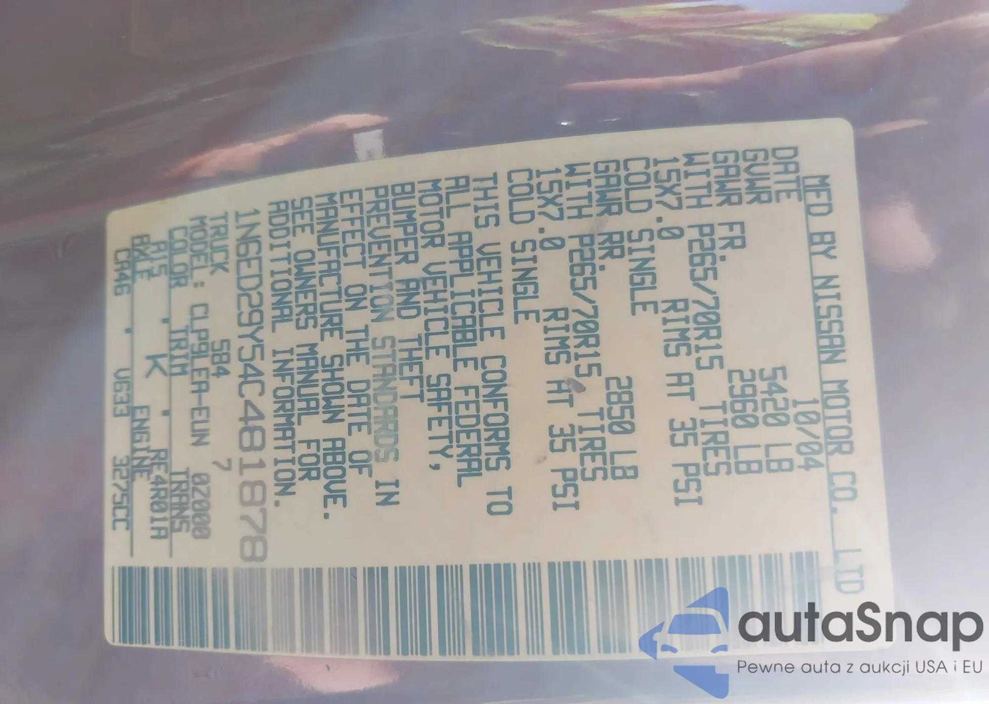 • VIN 1N6ED29Y54C481878
