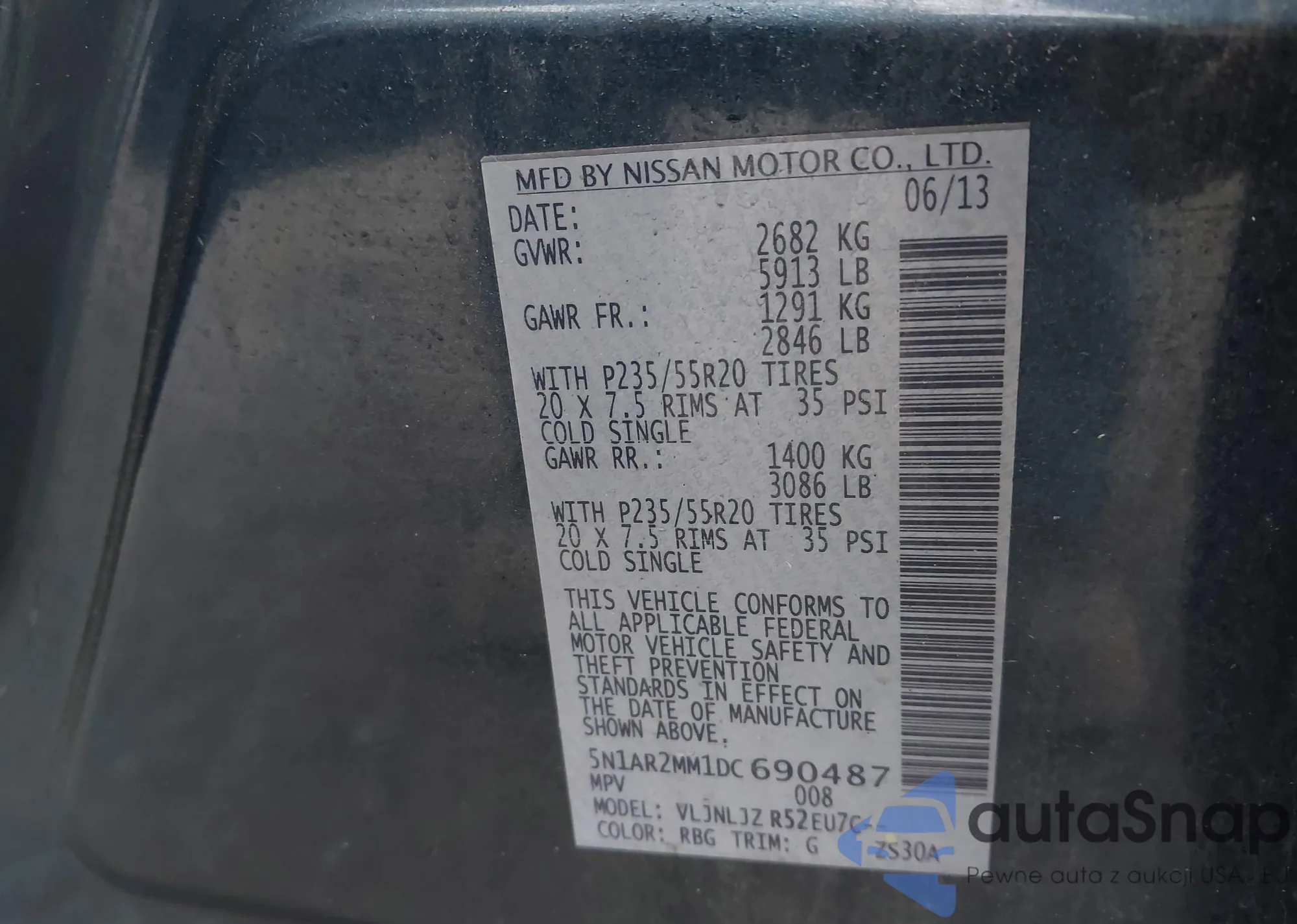 LOT: 42515674 VIN: JN8AZ2NC3B9303155