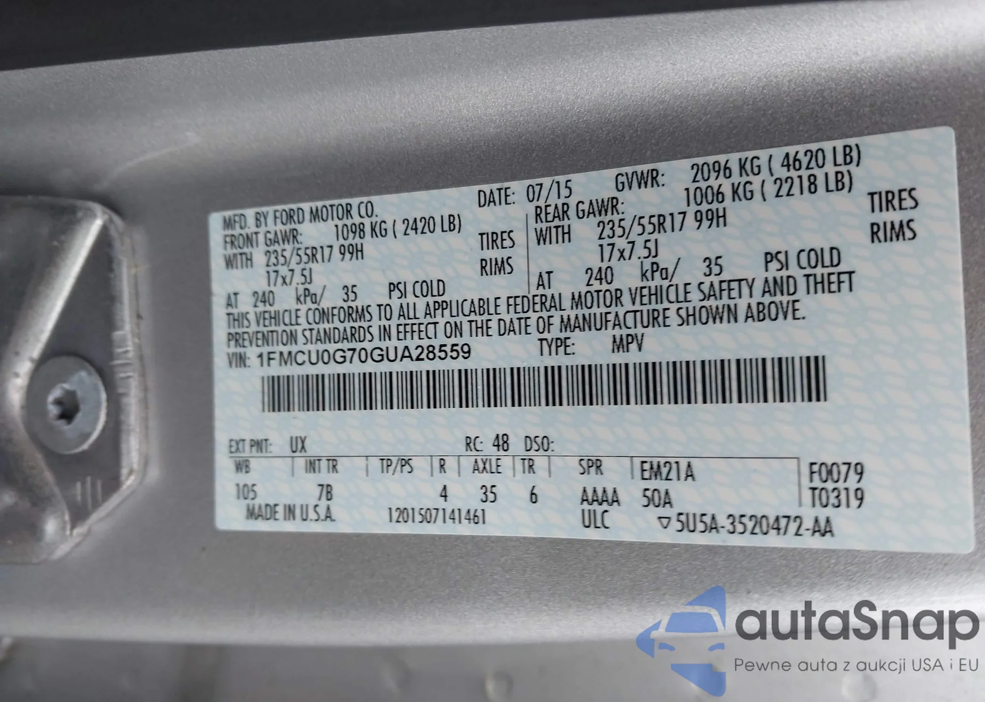 • VIN 1FMCU0G9XEUD09301