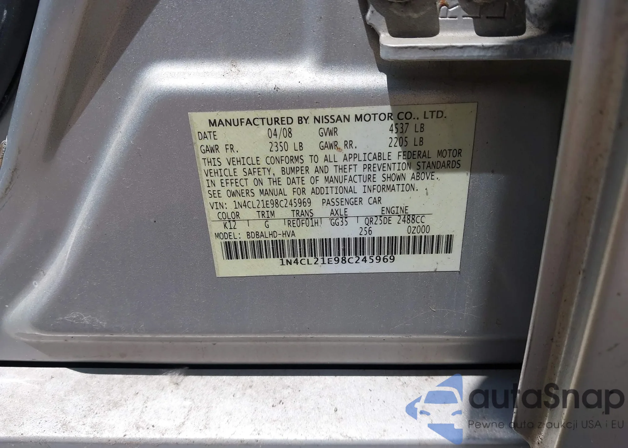 • VIN 1N4AL3AP7FC157210