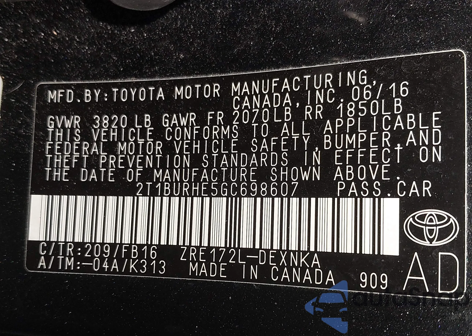 • VIN 2T1BURHE5GC698607