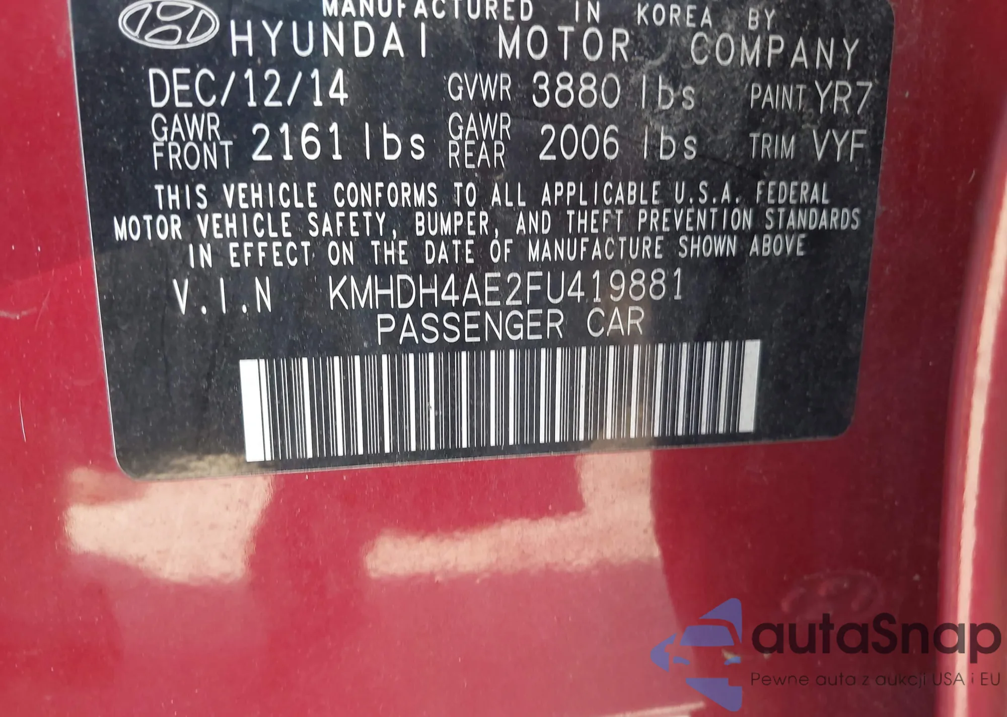 LOT: 42578689 VIN: KMHDH4AE2FU419881