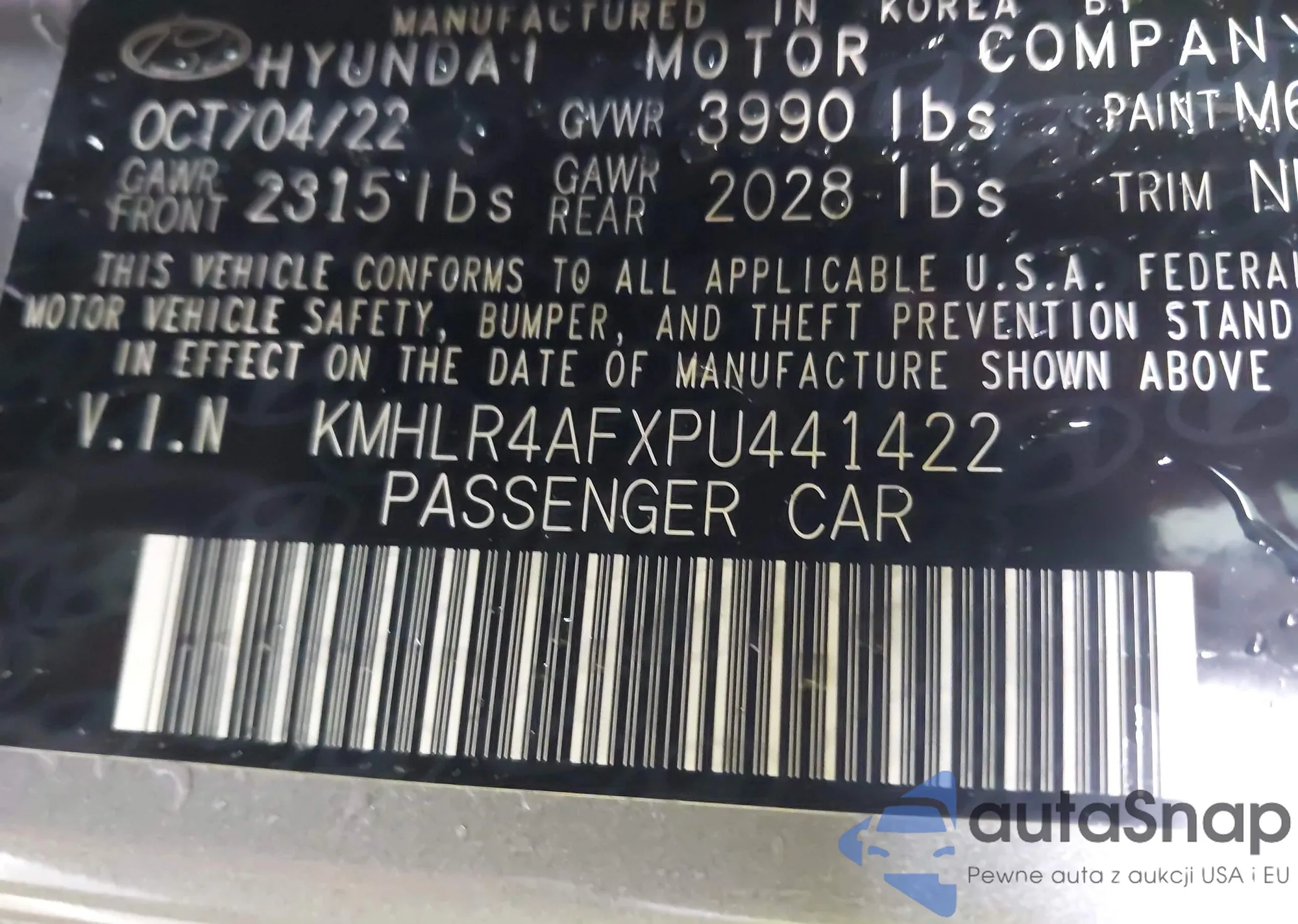 • VIN KMHLR4AFXPU441422