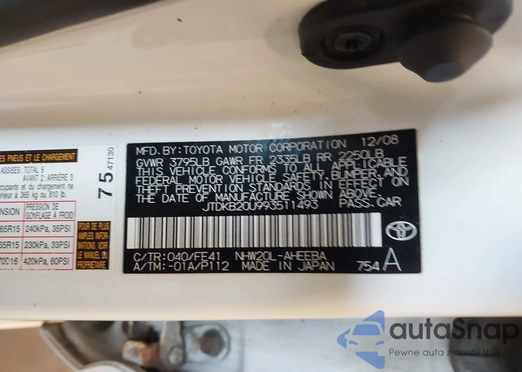 • VIN 4T1BF1FK0CU011319