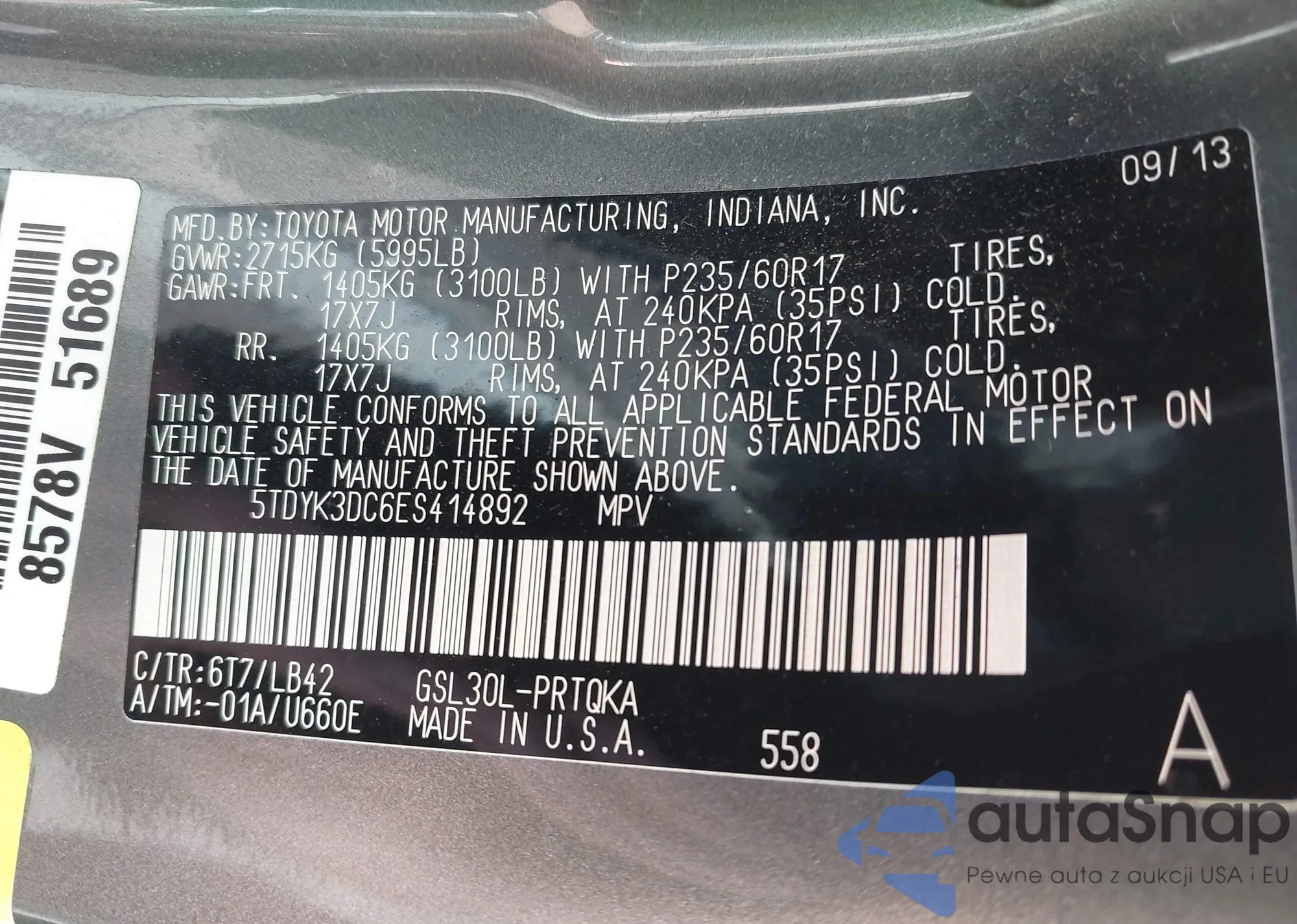 • VIN 5TDYK3DC6ES414892