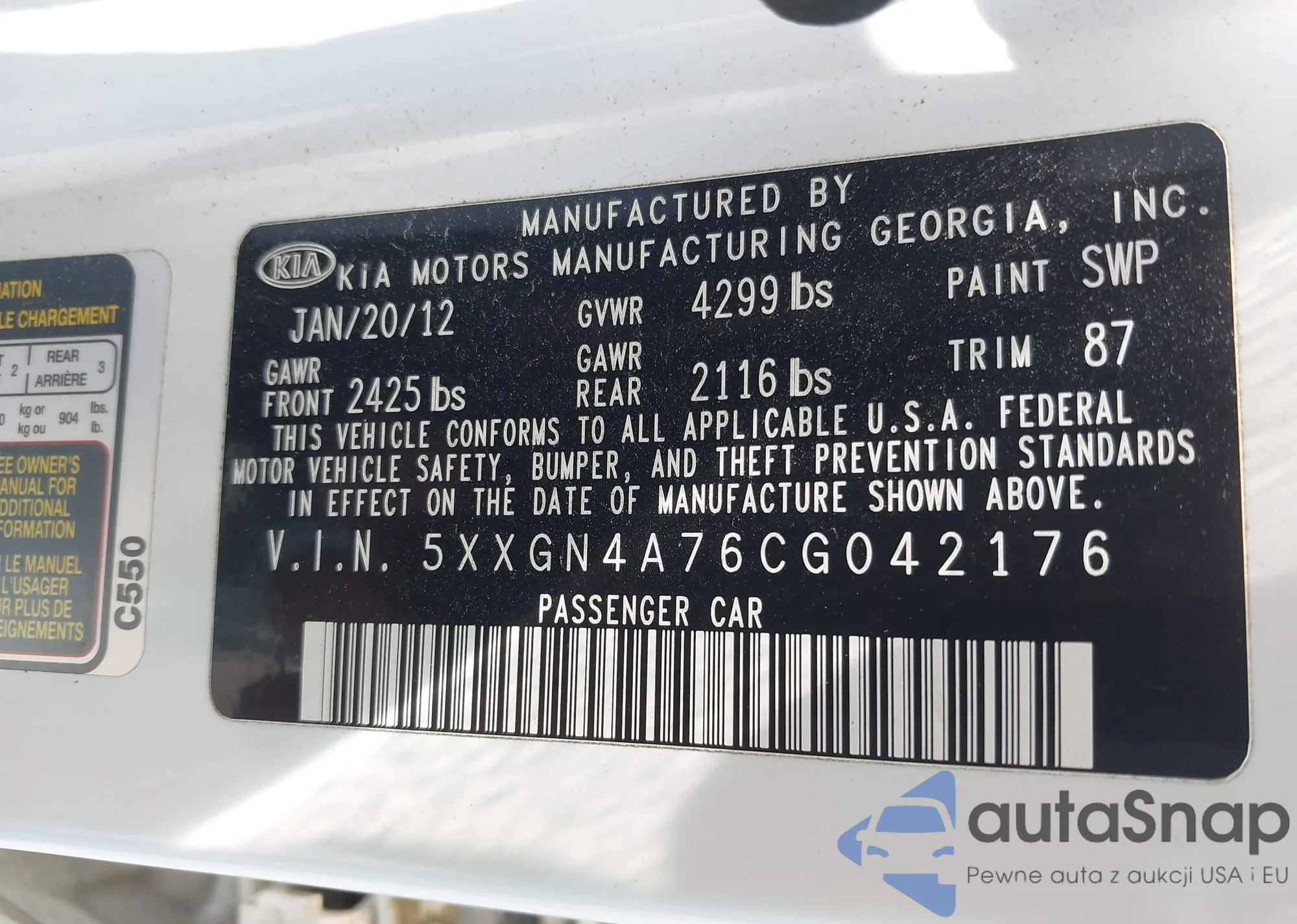 LOT: 42556926 VIN: 5XXGN4A76CG042176