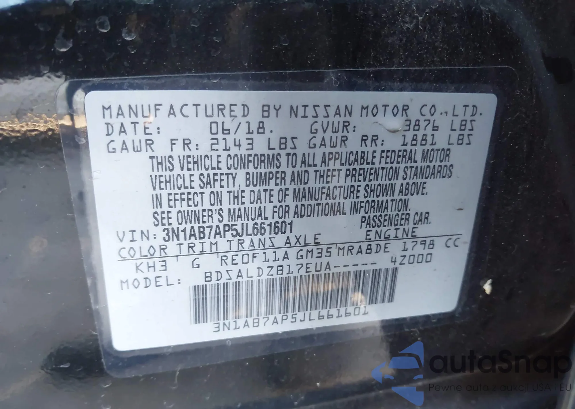 • VIN 3N1AB7AP5JL661601