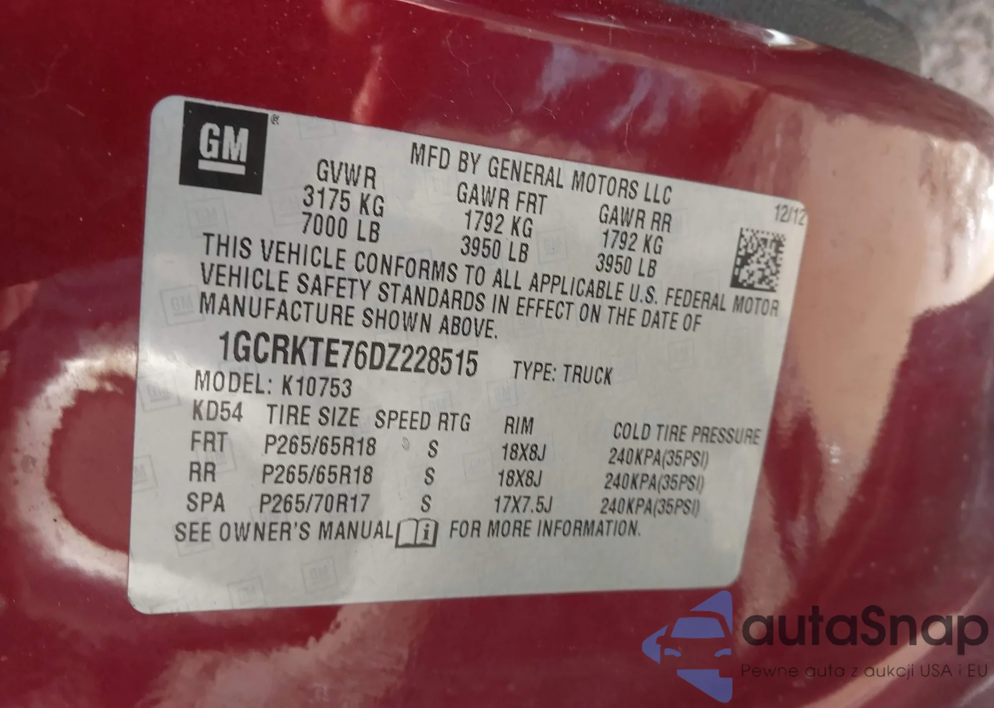 • VIN 1GCRKTE76DZ228515