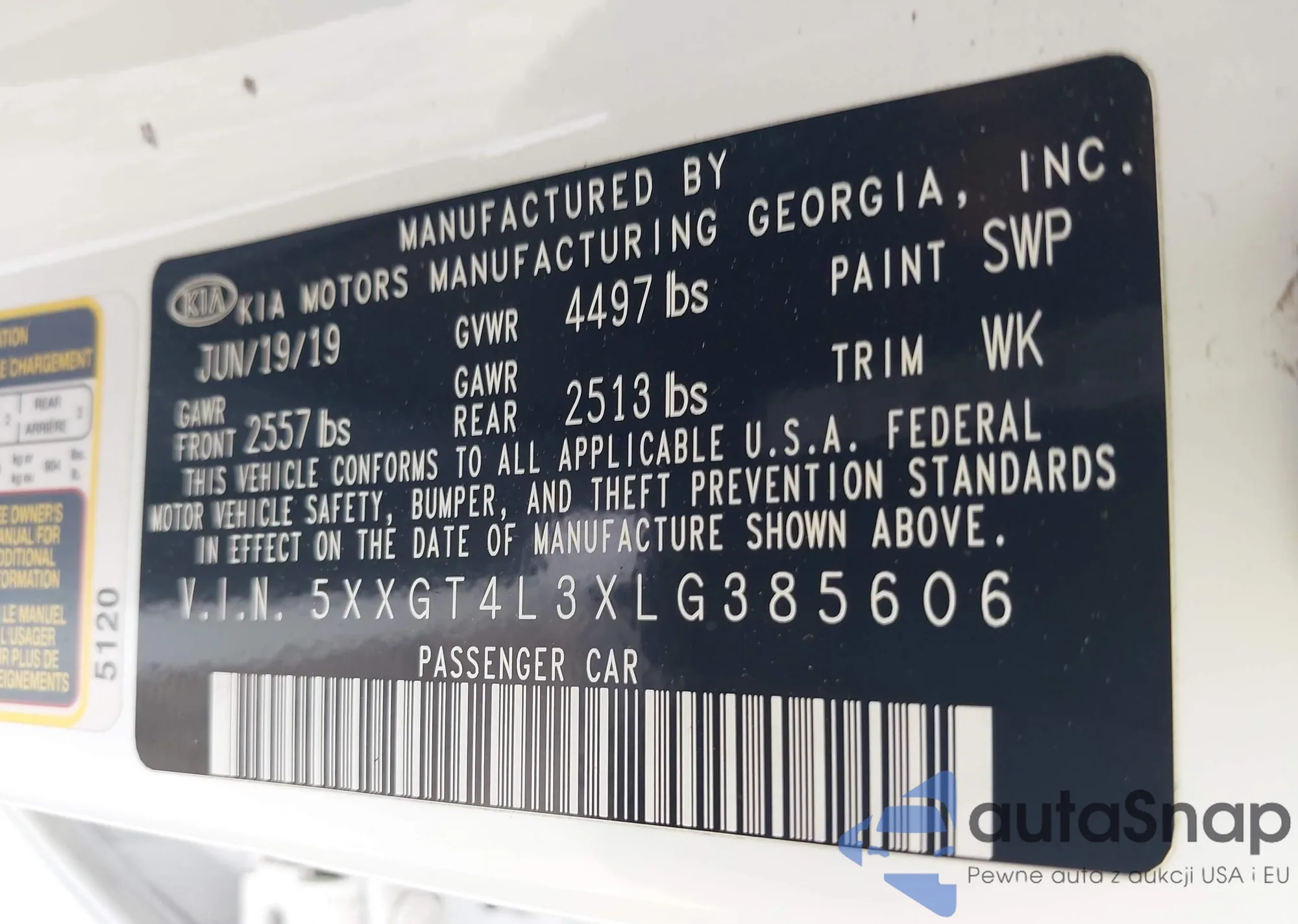 • VIN 5XXGT4L3XLG385606