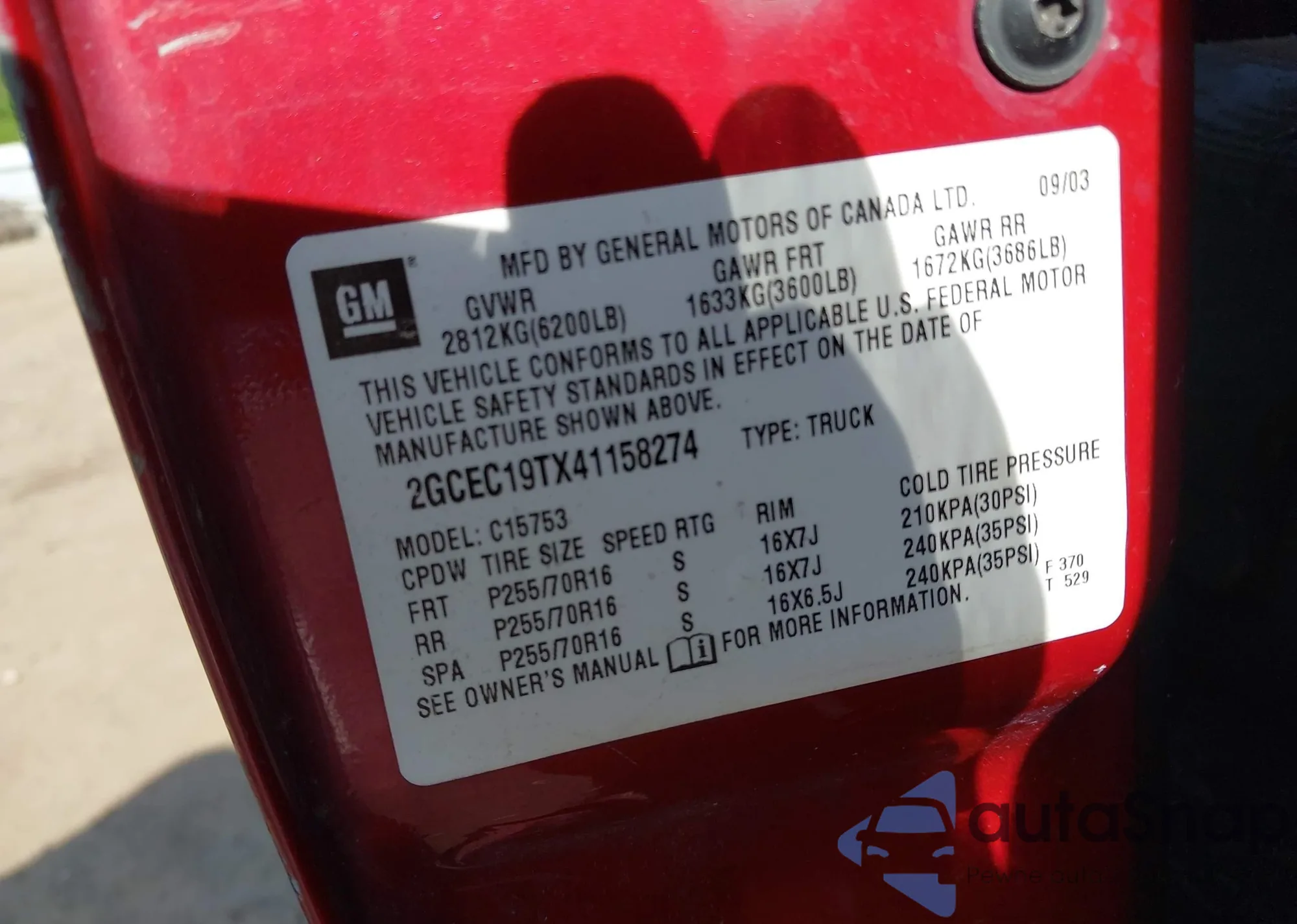 • VIN 2GCEC19TX41158274