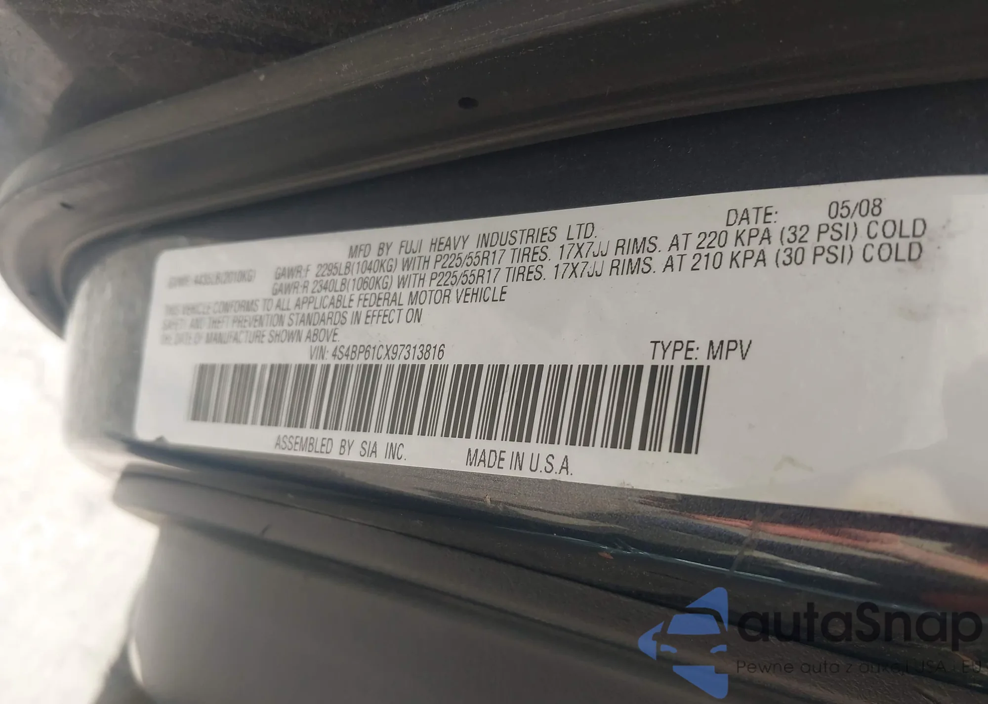 • VIN 4S3BNAC68G3035765