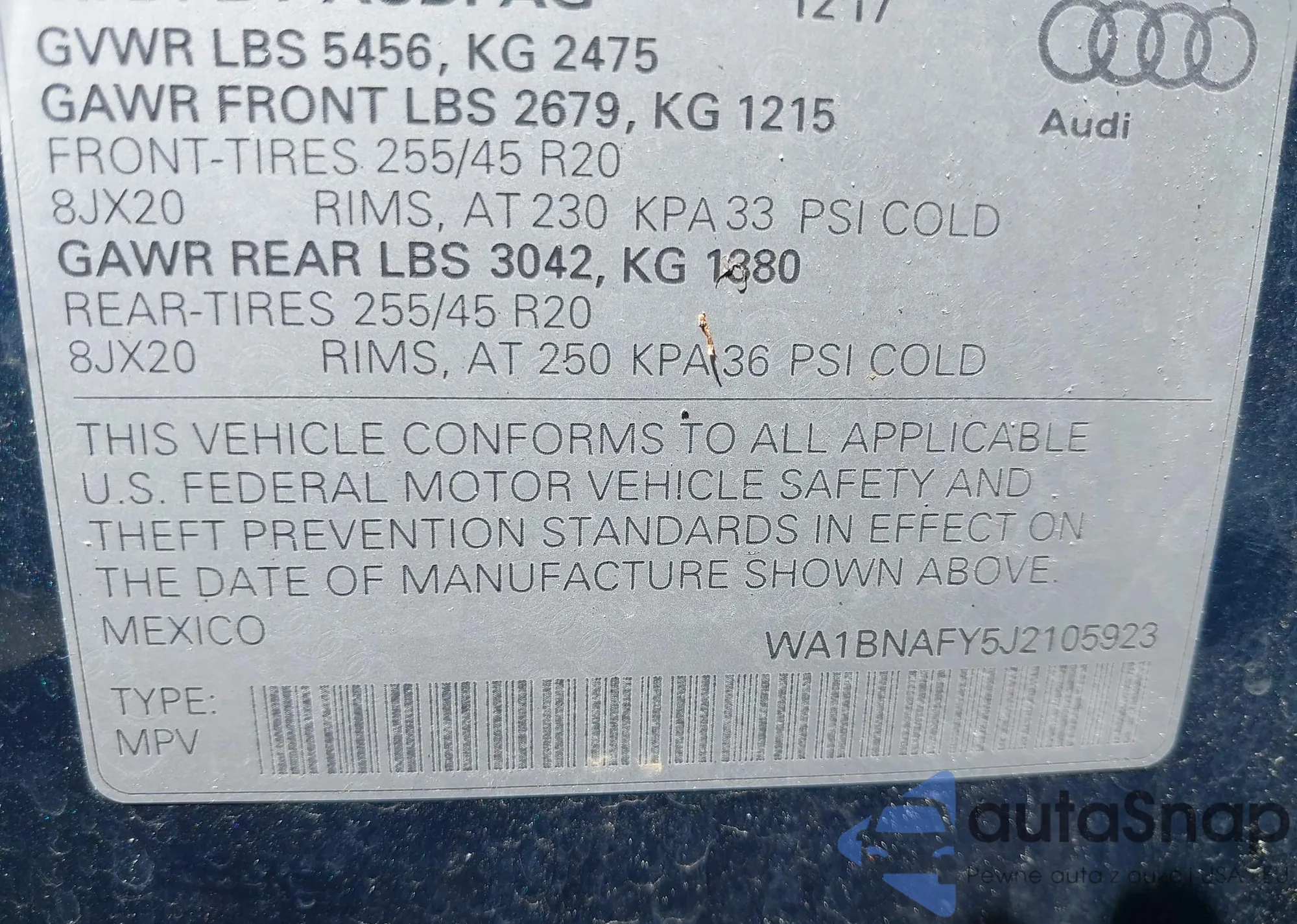 • VIN WBA8D9G5XHNT91375