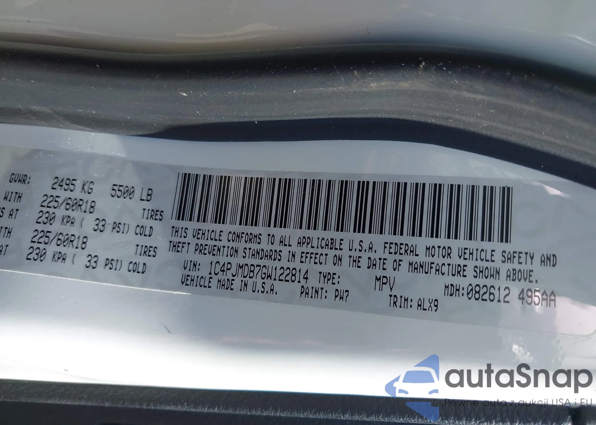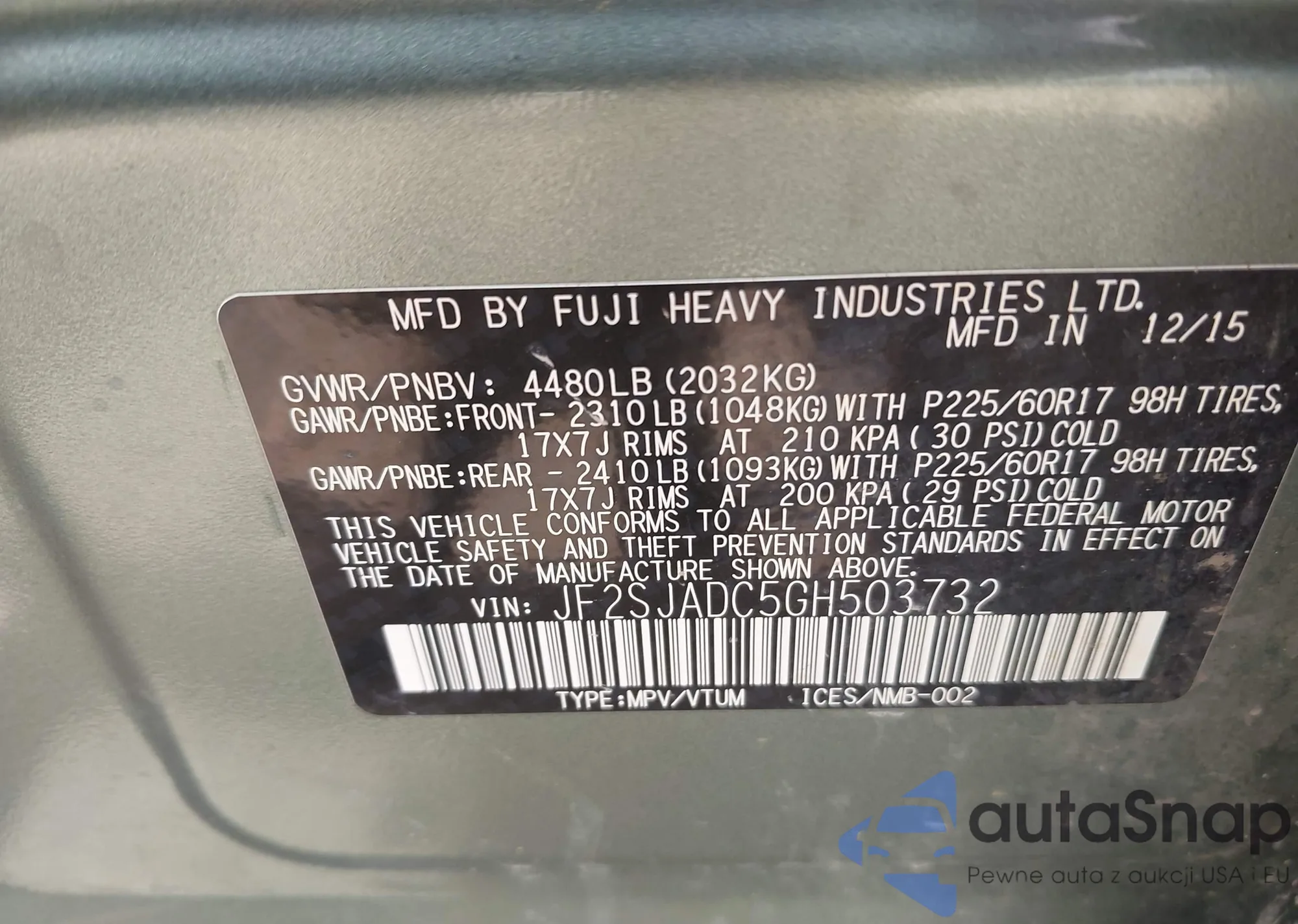 LOT: 42553740 VIN: JF2SJADC5GH503732
