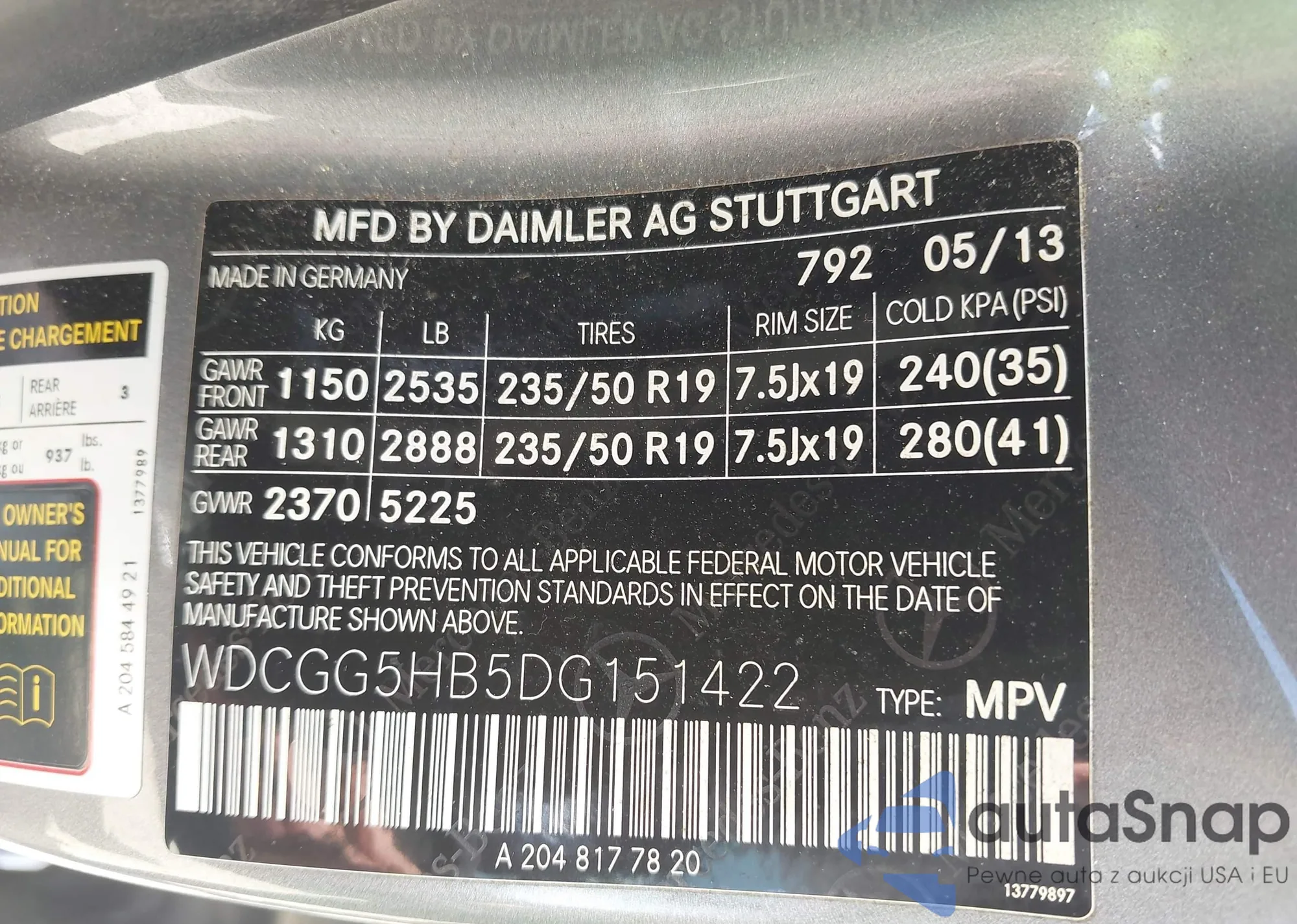 • VIN WDCGG5HB5DG151422