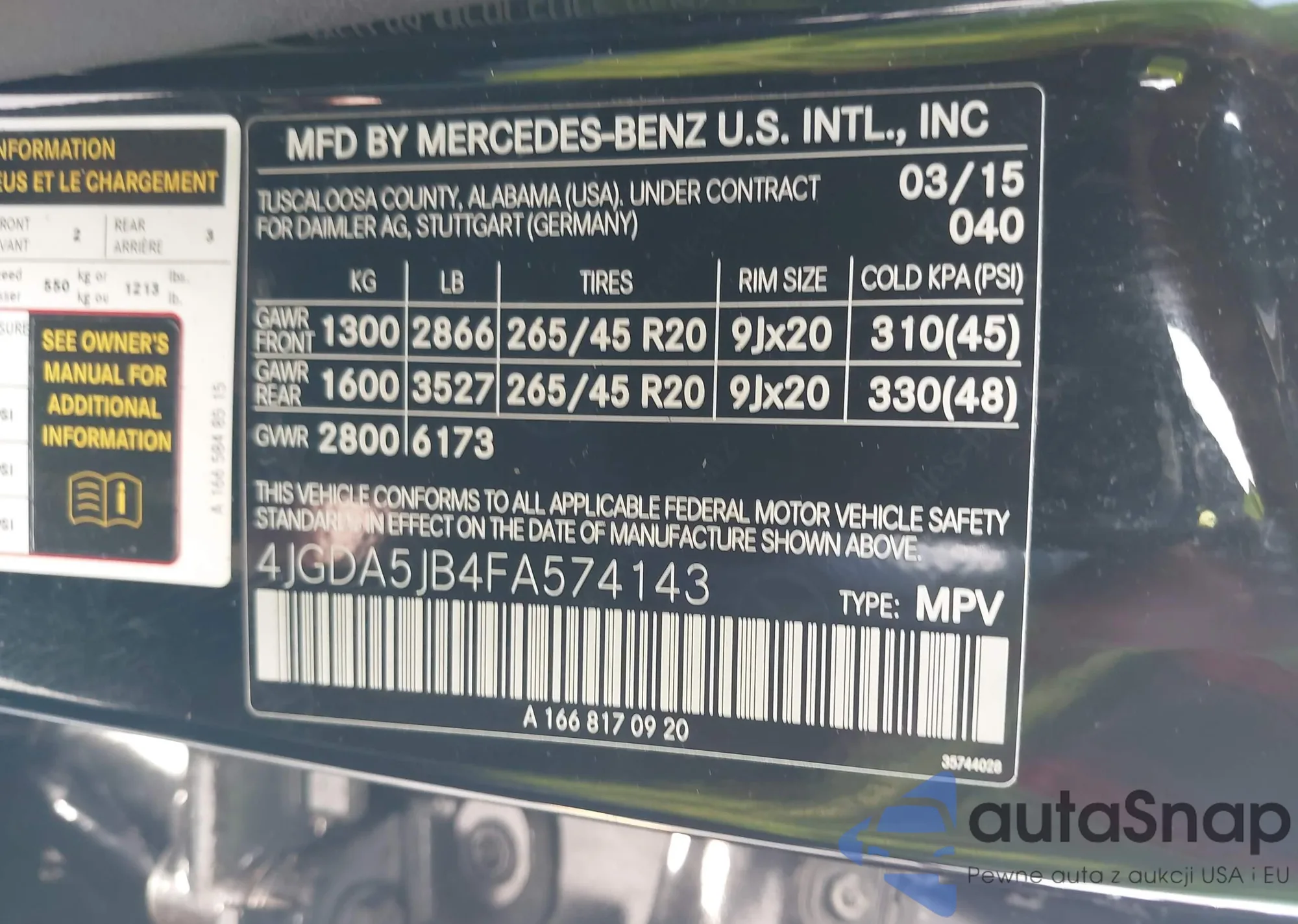 • VIN 4JGBB8GB5AA609178